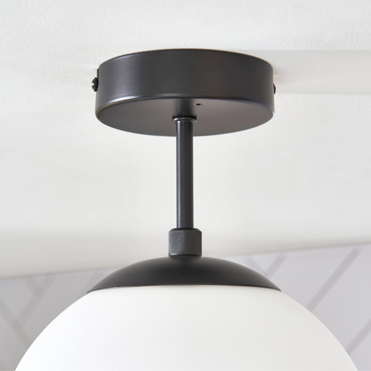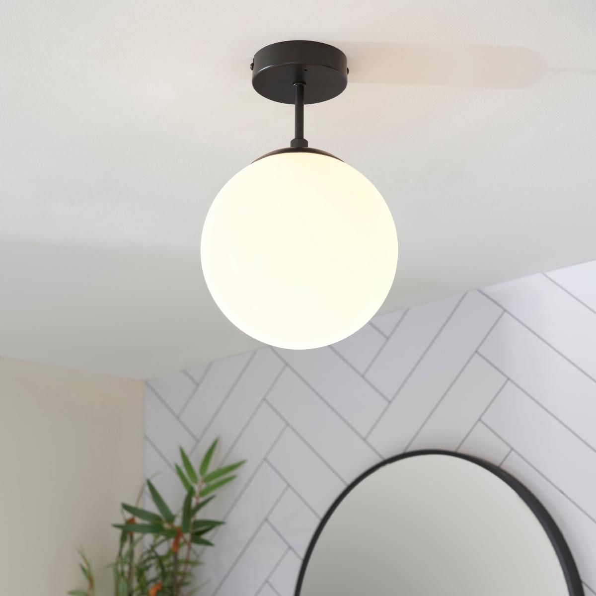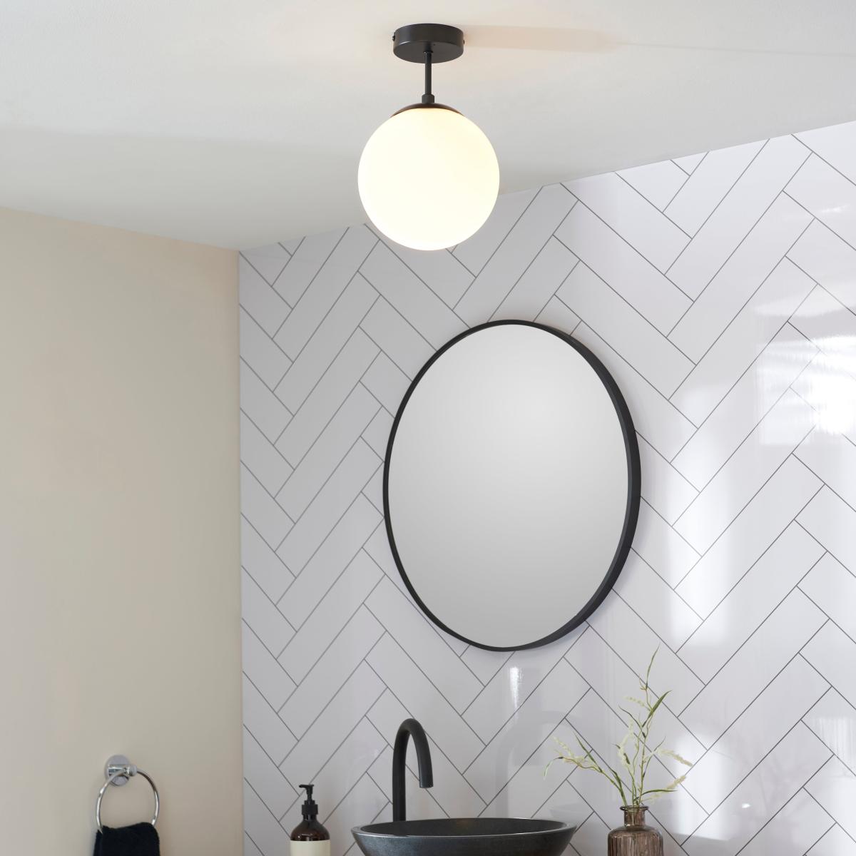 I particularly rate this Sfera flush ceiling light for its clean lines and matt-black finish paired with an opal glass globe - it feels modern without shouting for attention. It works brilliantly in contemporary or Scandi-inspired bathrooms, especially against white tile or pale-grey walls, and dovetails neatly with black tapware, mirror frames and towel rails. For a balanced look, install two or three evenly spaced if you have a larger room, or use as a single feature in a smaller ensuite. Keep surrounding décor simple - think floating vanities and clear glass screens - so the light can do the work of softening the space without competing with clutter.