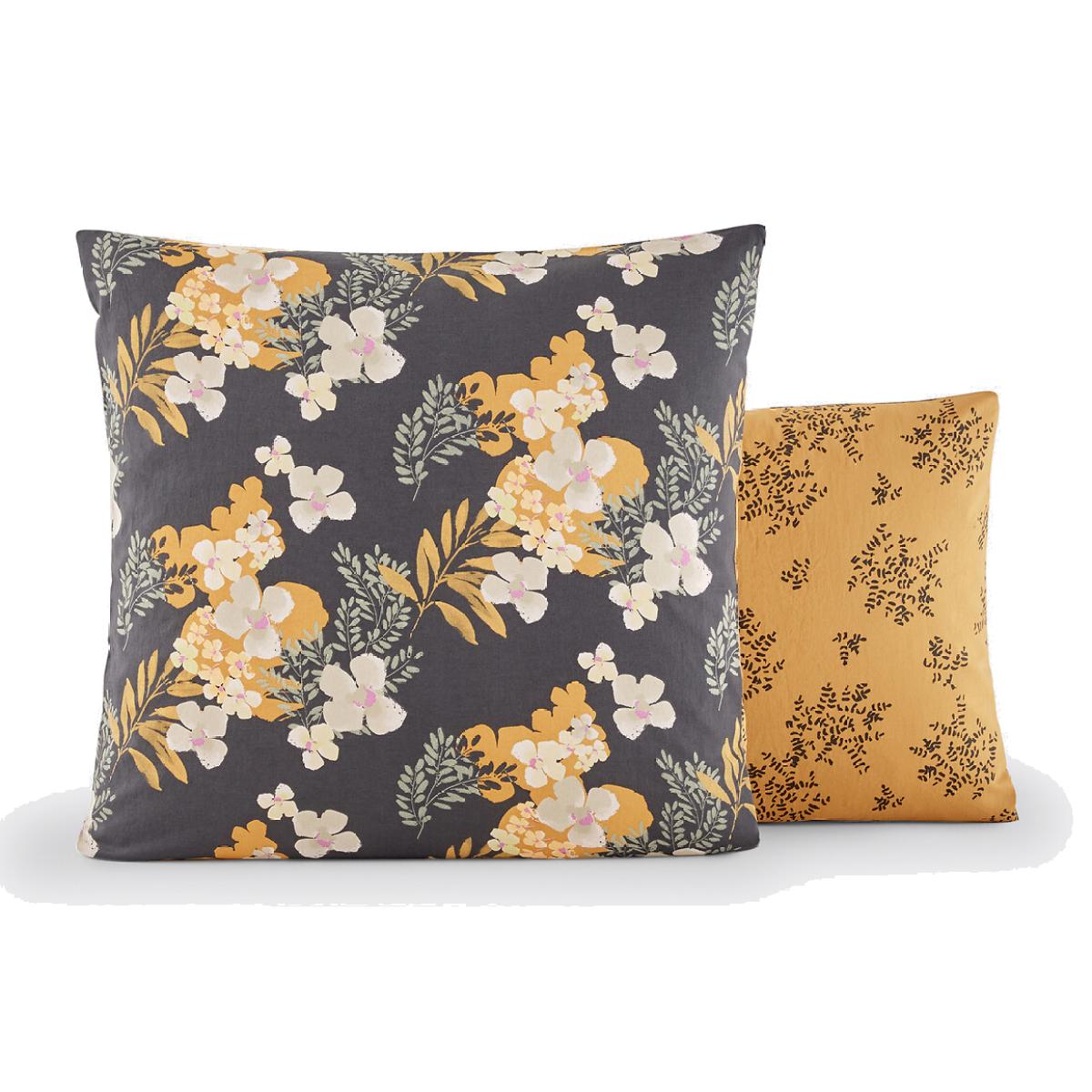 Inspired by vintage design, with a super soft washed cotton finish, this bedding has a 'shabby-chic' style. With a nod to nature, the Shabby bed linen alternates a bright floral print and a floral 'line drawing' design. Like having a bouquet of flowers in your bedroom. A design exclusive to La Redoute Interiors. The washed cotton has been delicately bleached during its manufacture. Soft, supple and comfortable, it softens over time. Its slightly wrinkled appearance is incredibly on-trend, and it does not require ironing. Product Details • 100% cotton • 144 thread count • Front printed with flowers on grey background, reverse printed with small pattern. Change up your bedding look for each season by mixing and matching this range with plain items from our Scenario washed cotton bedding collection. Care Advice • Machine washable at 60°C • By washing your laundry at 40°C instead of 60°C, you limit energy consumption. Dimensions • 50 x 70cm: Rectangular • 63 x 63cm: Square • OEKO-TEX® Standard 100. Standard 100 certification by OEKO-TEX® tests textile products for harmful substances via an independent, international label.