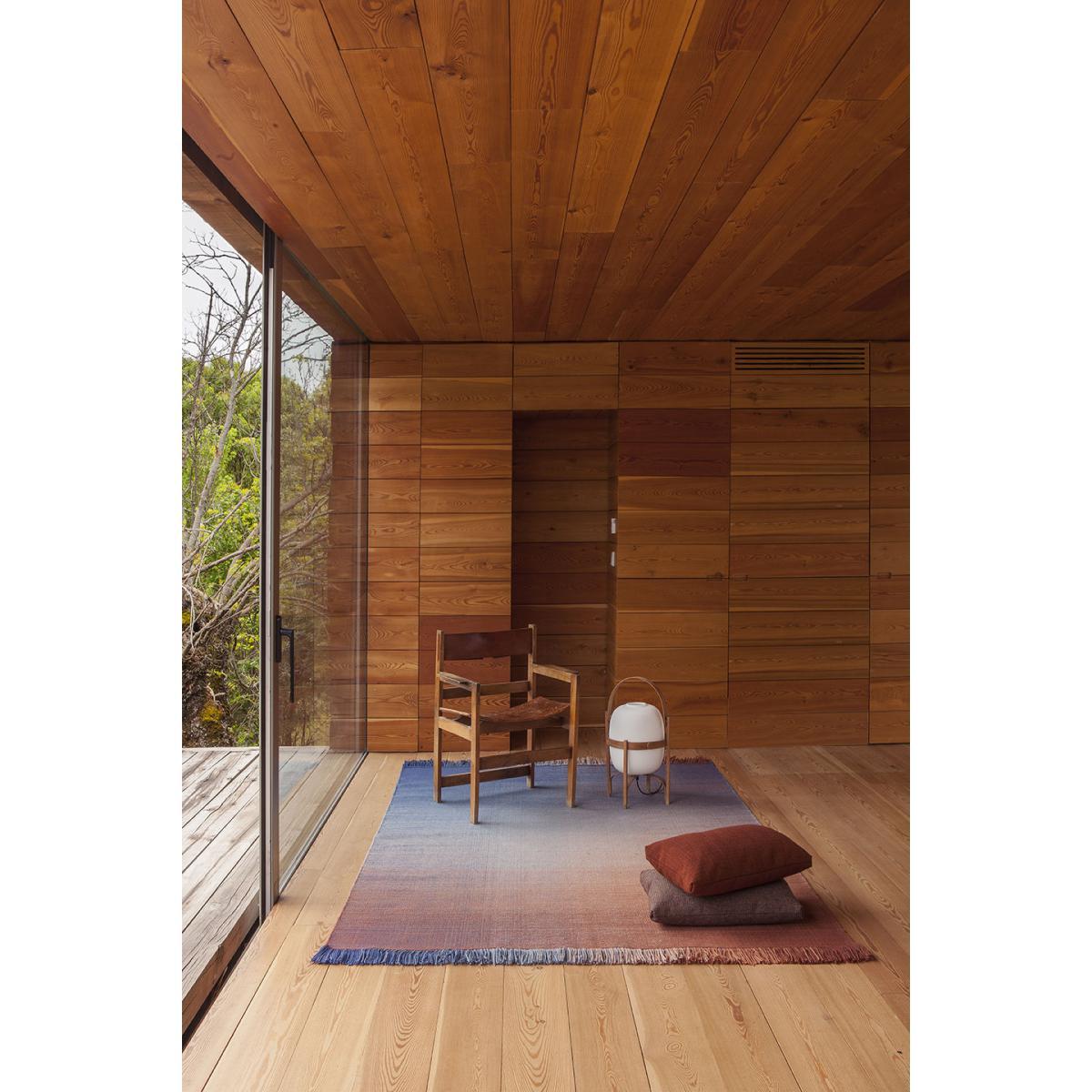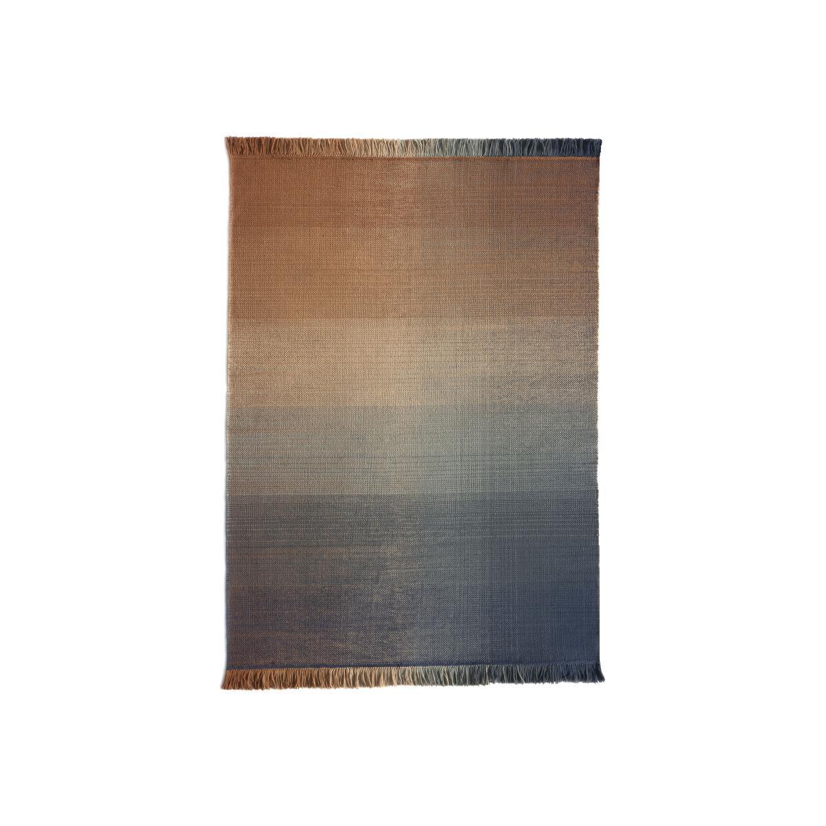 The Shade collection is now available as an outdoor version! This rug is inspired by those magical moments in nature where colours blend in and tell their own story at nightfall. Turkish designer Begüm Cana Özgür emphasises: "This is a hand-woven flat rug that generates incredible energy, with well-balanced colours. The surface gives off a feeling of tranquillity and well-being revealed by the vibrating colours. " This collection is the result of a complex manual technical process to achieve the density, regularity and fluidity of the desired effect. 100% polyethylene, two main colour variations converge in each rug, one vertical and one horizontal. These master colours are in harmony with six transition shades which create this wonderful fading effect. Ideal for outdoor use, this rug has been designed to offer extreme resistance to water, weather and UV.