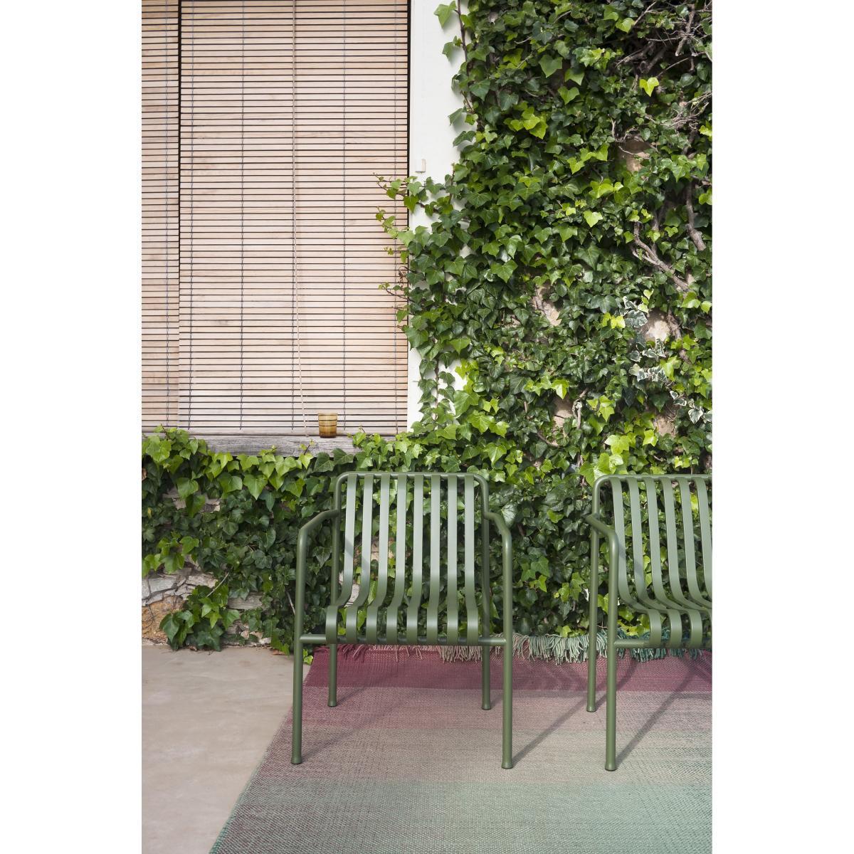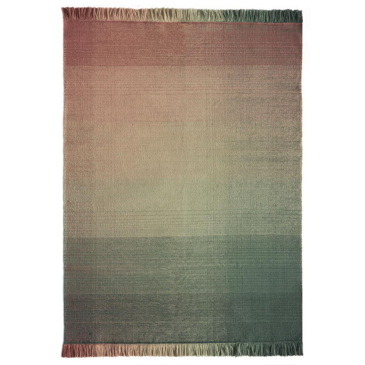 The Shade collection is now available as an outdoor version! This rug is inspired by those magical moments in nature where colours blend in and tell their own story at nightfall. Turkish designer Begüm Cana Özgür emphasises: "This is a hand-woven flat rug that generates incredible energy, with well-balanced colours. The surface gives off a feeling of tranquillity and well-being revealed by the vibrating colours. " This collection is the result of a complex manual technical process to achieve the density, regularity and fluidity of the desired effect. 100% polyethylene, two main colour variations converge in each rug, one vertical and one horizontal. These master colours are in harmony with six transition shades which create this wonderful fading effect. Ideal for outdoor use, this rug has been designed to offer extreme resistance to water, weather and UV.
