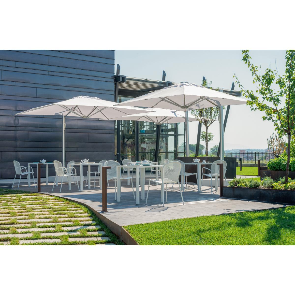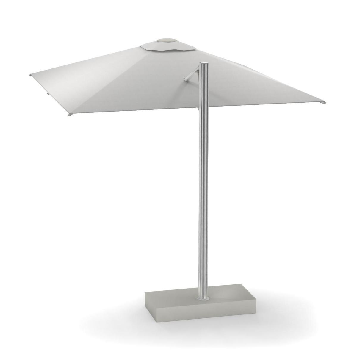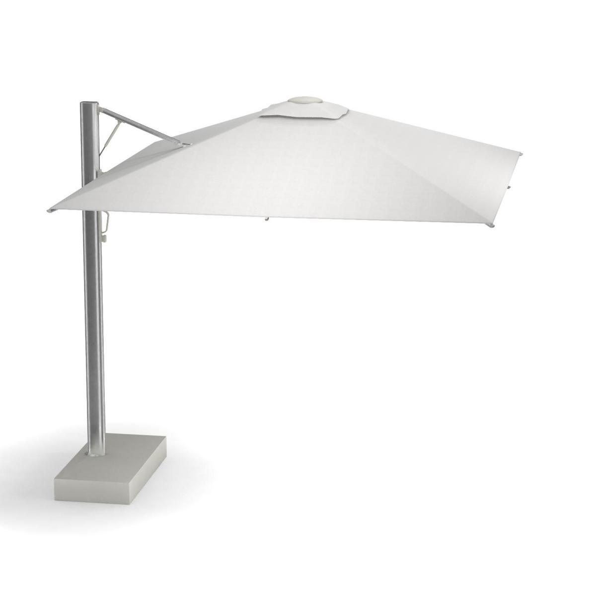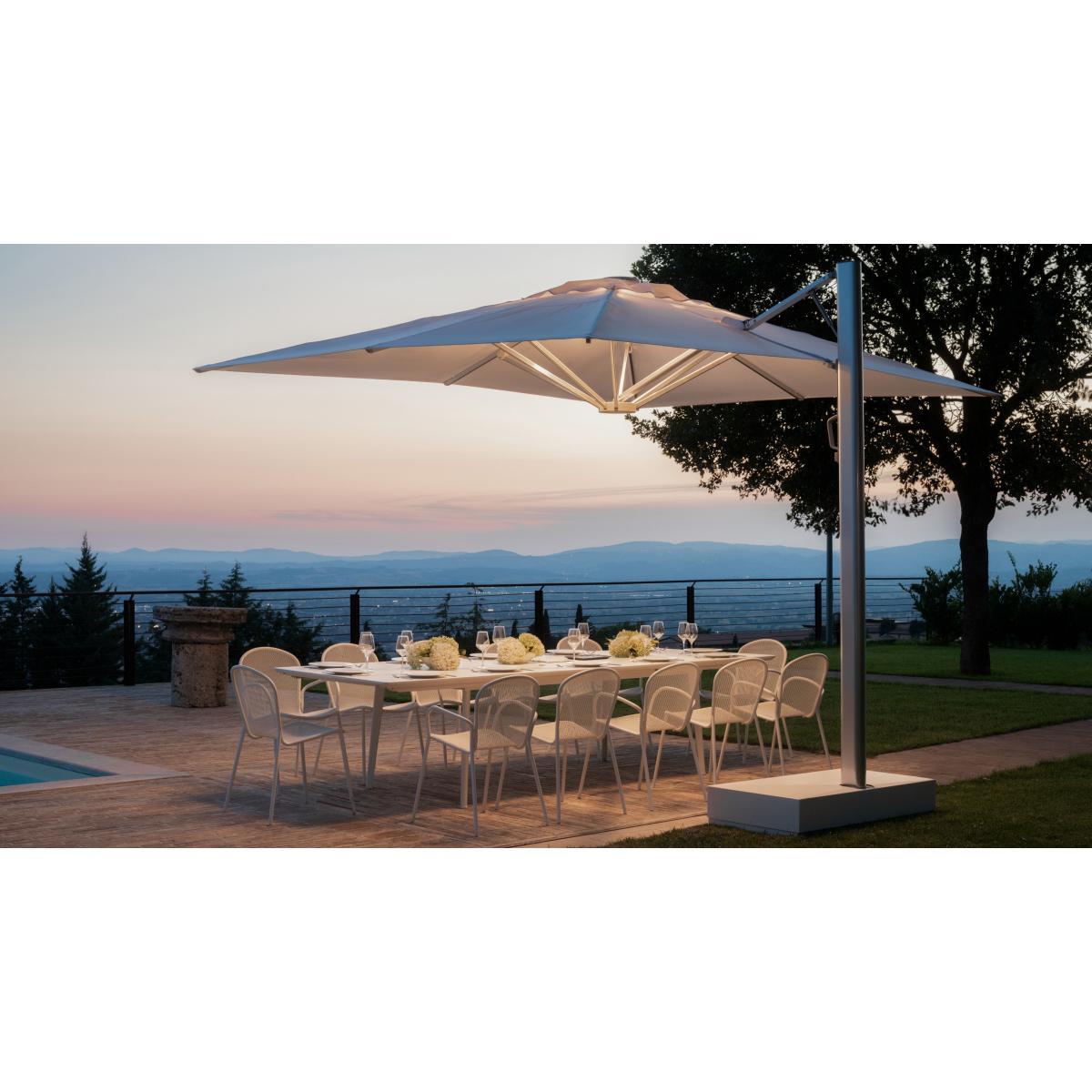 The perfect mix between functionality and aesthetics! The result of exceptional technological research, this parasol uses a gas spring system to make it easier to open and close. Shade Pro combines an acrylic canvas and an anodised aluminium structure. To provide effective protection from the sun, this parasol plays the mobility card: the canvas can be inclined (3 different inclinations on the horizontal plane). What’s more, the canvas rotates through 360°: it rotates all the way around the pole to adapt to the position of the sun. The large dimensions of the canvas offer a wide area of shade. The offset base takes up minimal space to make the most of the entire shaded area under the canvas. The high-quality materials and exceptional finishes offer beauty, durability and longevity to this parasol. The acrylic canvas is waterproof, UV-resistant and mildew-resistant. The anodised aluminium structure and pole are both robust and light. A model of chic sobriety and functionality, the Shade parasol fits elegantly into both contemporary or classic exteriors. It finds its place in both private spaces and public environments. PLEASE NOTE: The base is not included: contact us to order. LED lighting system and protective cover sold separately: contact us to order.