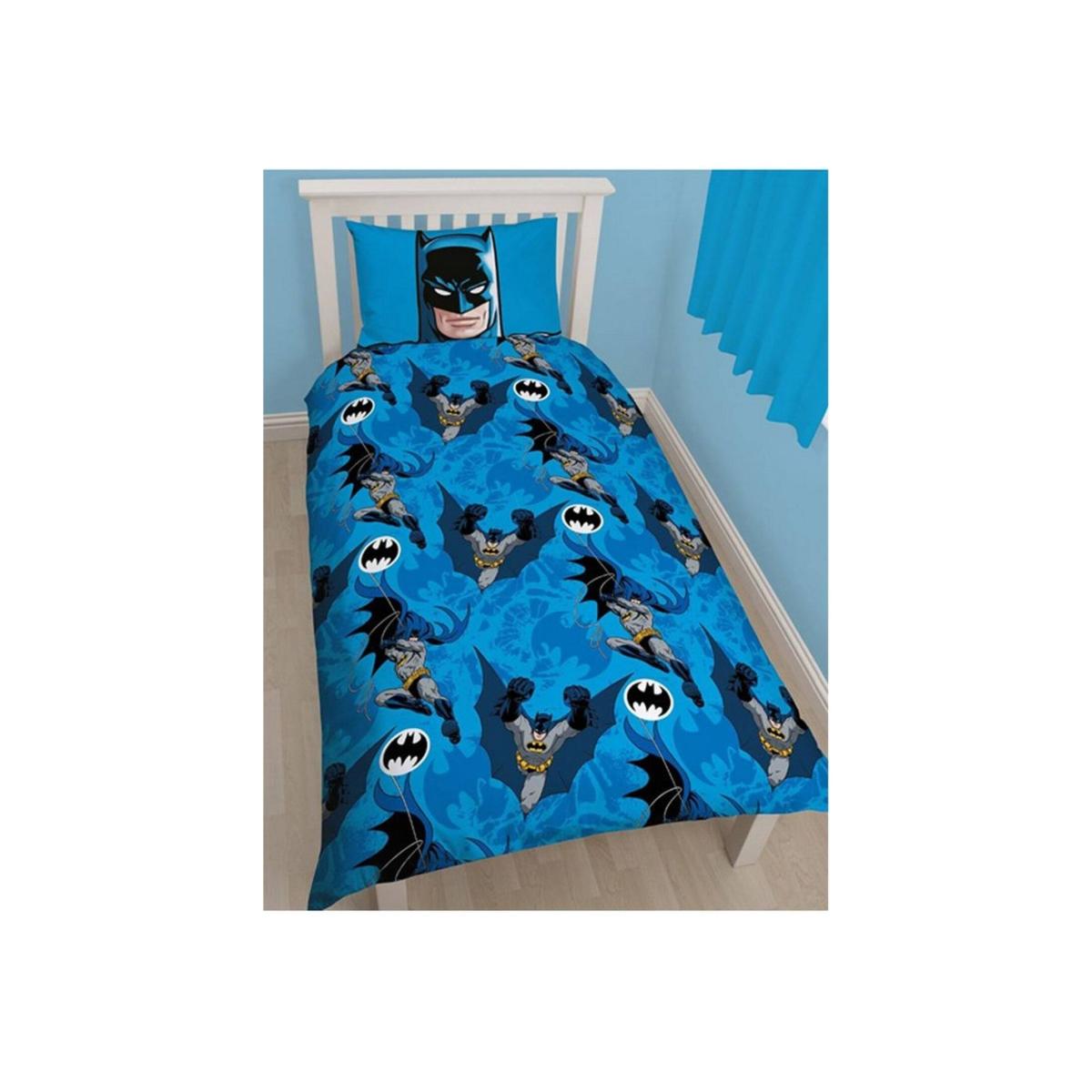 This fantastic Batman Shadow single duvet cover set is the perfect bedding set for fans of Caped Crusader! The front design features a great image of the mighty Batman with his body on the duvet cover and his head on the pillow, whilst the reverse features lots of smaller images of Batman on a blue bat themed background. The set can be machine washed and tumble dried on a low setting.