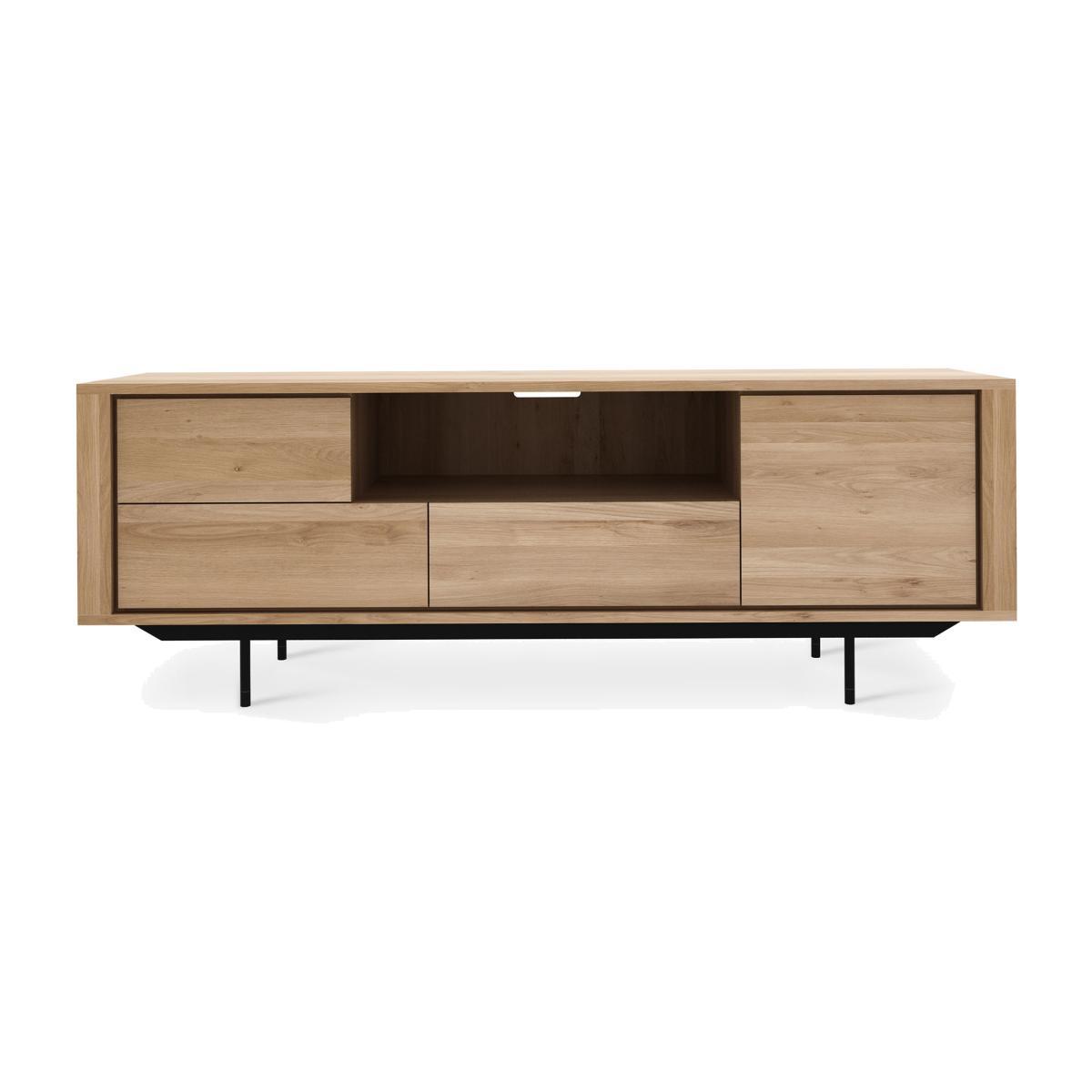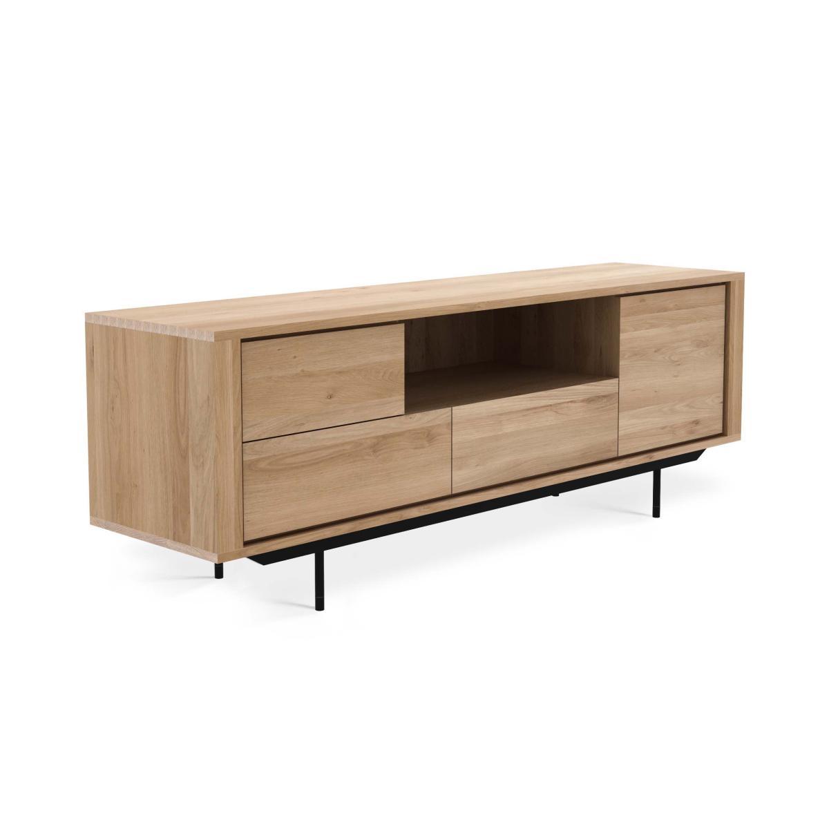 For twenty-five years, Belgian brand Ethnicraft has paid tribute to the beauty and authenticity of solid wood. Timeless, extremely strong and durable, these are quality pieces of furniture that age wonderfully and are passed down from generation to generation. Handcrafted, Ethnicraft furniture is the result of exceptional know-how. Behind the apparent simplicity of the design hides a constant search for innovation. Integrating advanced techniques into the creative process, each new design is worked out down to the smallest detail. Respectful of the environment, the wood used comes from sustainably, responsibly managed European forests (FSC Co. C certification which attests that the wood was produced with respect for the environment and social values). Inspired by Scandinavian wooden furniture, Shadow is a superb solid oak TV cabinet with clear, refined lines. Oak stands out for its warm, natural finish as well as a superb veined aspect which further reinforces the living character of the product. The black metal base brings a graphic, contemporary dimension to the silhouette.