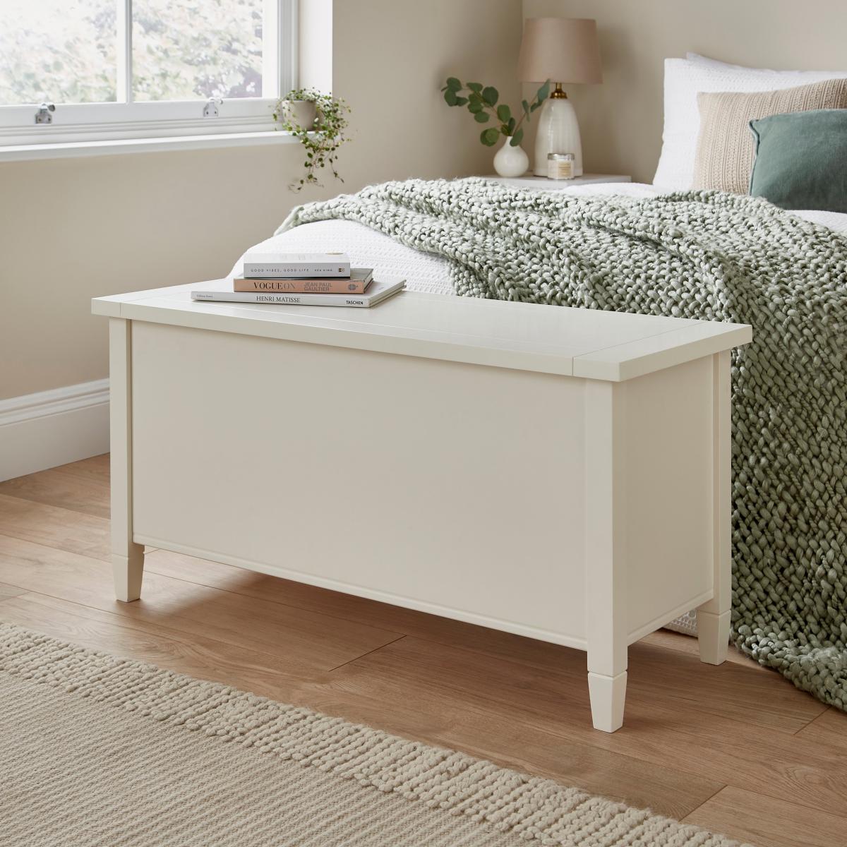 The Shaker trunk in ivory offers a classic, versatile addition to a range of interiors. I love its clean, understated look, which pairs well with both traditional and modern styles. It works particularly well in country-inspired or minimalist spaces, providing plenty of storage tucked away discreetly under the lid - perfect for keeping spare throws, books, or even footwear organised. For styling, consider placing a tray or decorative objects on top to create a neat surface for placing drinks or accessories, especially in living rooms or bedrooms. Its neutral hue also makes it easy to blend into colour schemes, adding a touch of charm without overwhelming the space.