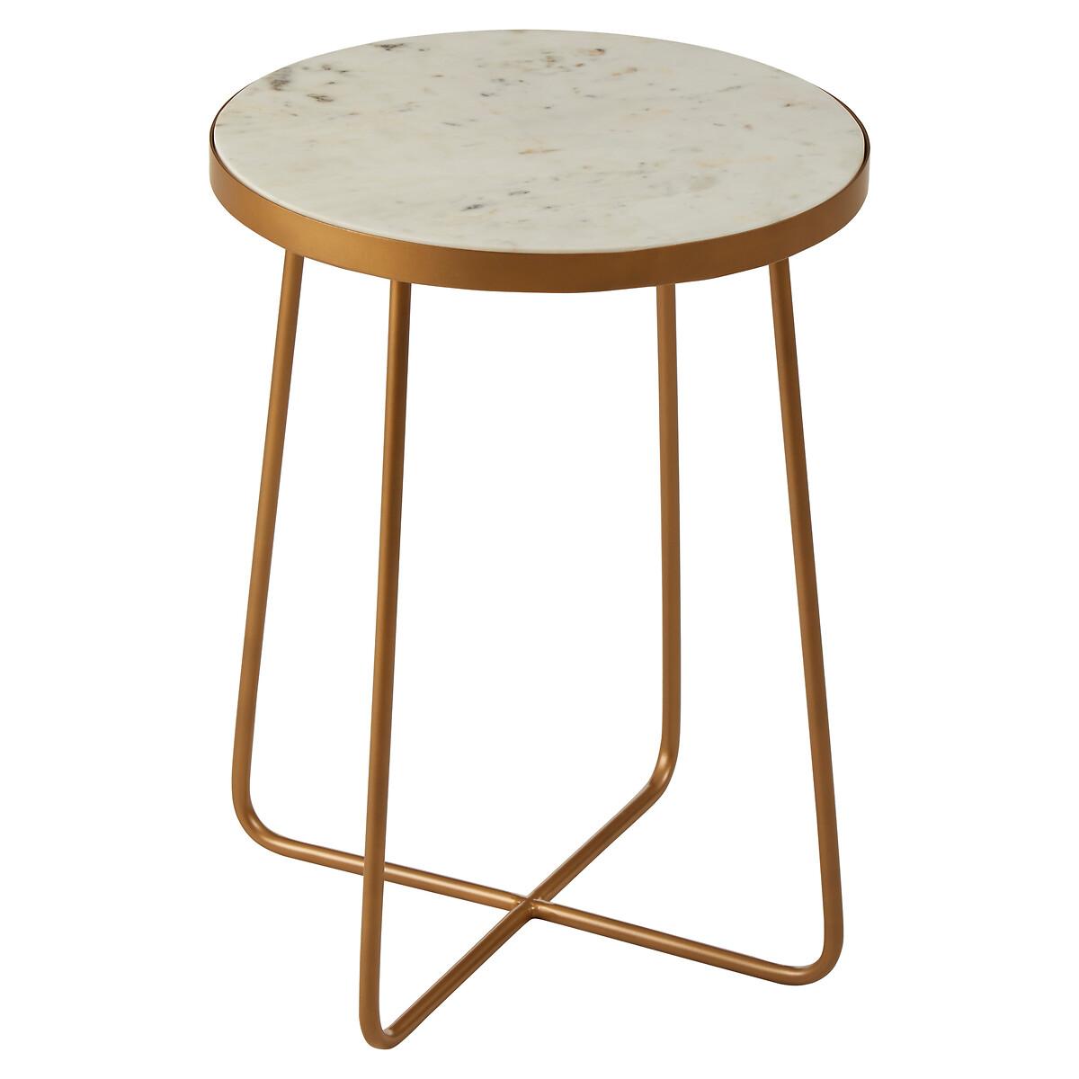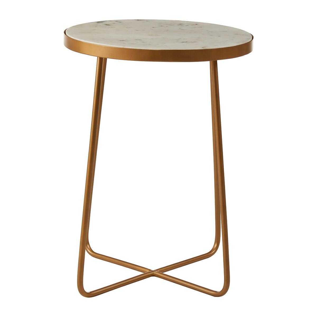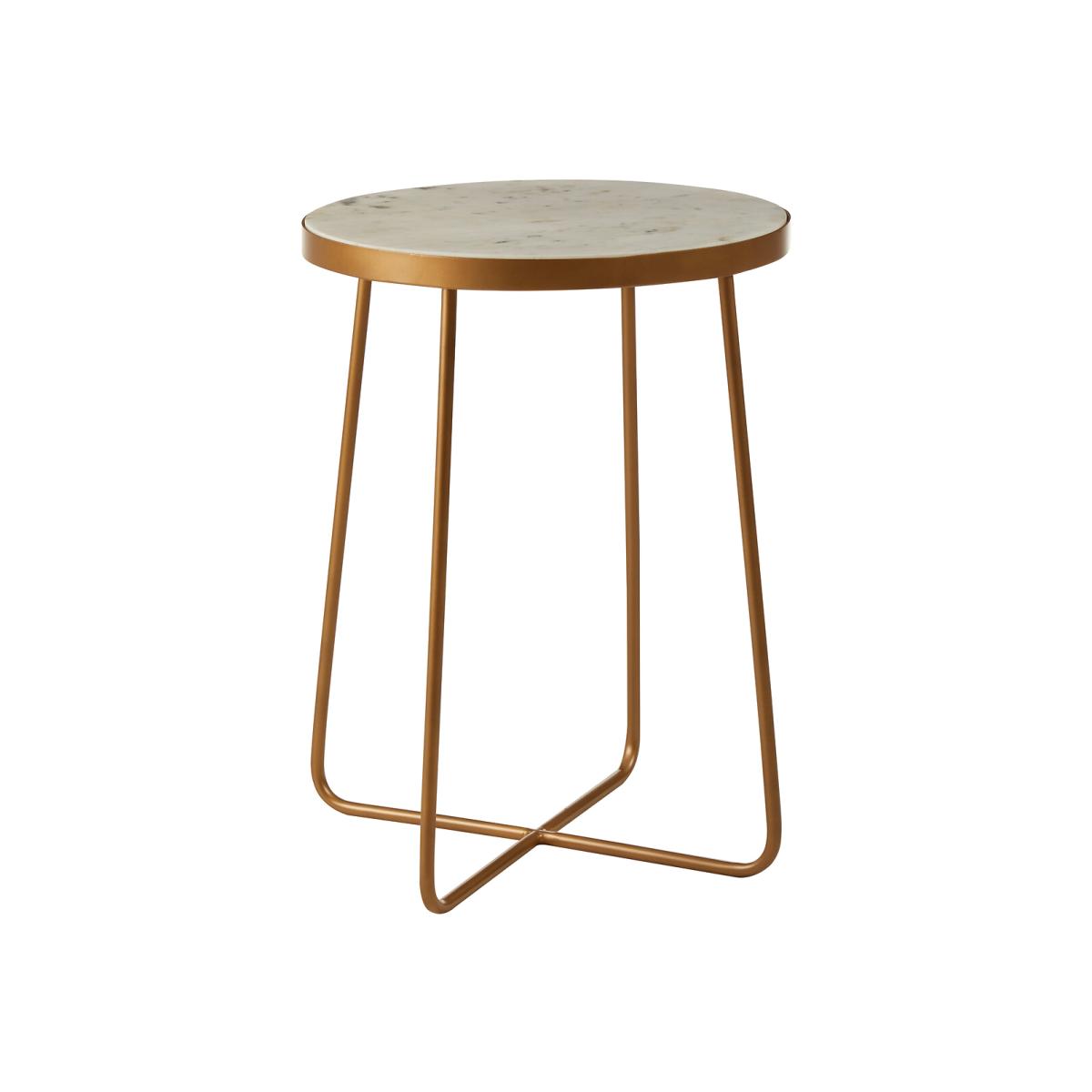 Shalimar Round Side Table, White Marble, Gold Finish Metal