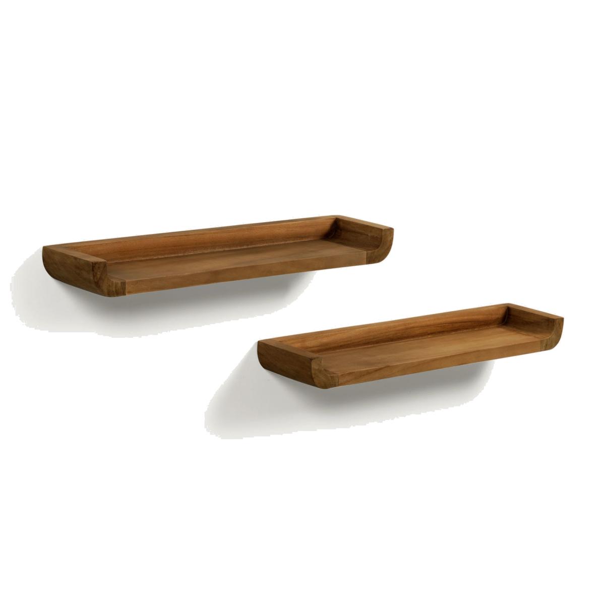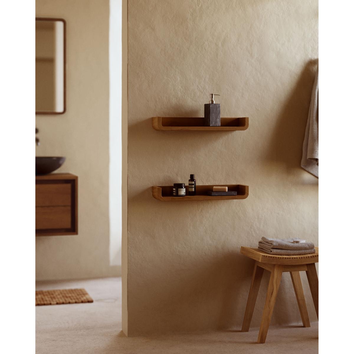 Shamel set of 2 shelves in solid teak with a walnut finish, 50 x 5 cm