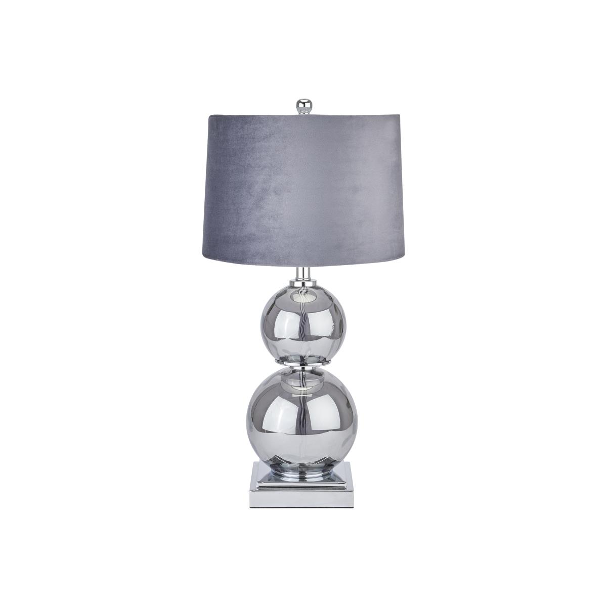 This is the Shamrock Metallic Glass Lamp With Velvet Shade. An elegant lamp of impressive proportions with a uniquely shaped handcrafted glass base. This lamp comes complete with grey velvet shade and in-line switch and will tone beautifully with a variety of decor schemes.