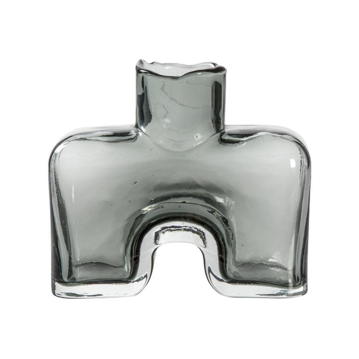 With bottled styling, two separate feet and uneven detailing around the neck, the Shane Glass Footed Vase is at once cute and quirky. Crafted from Grey frosted glass, this charming piece will make a statement on its own, or look impressive dressed with a few simple stems.