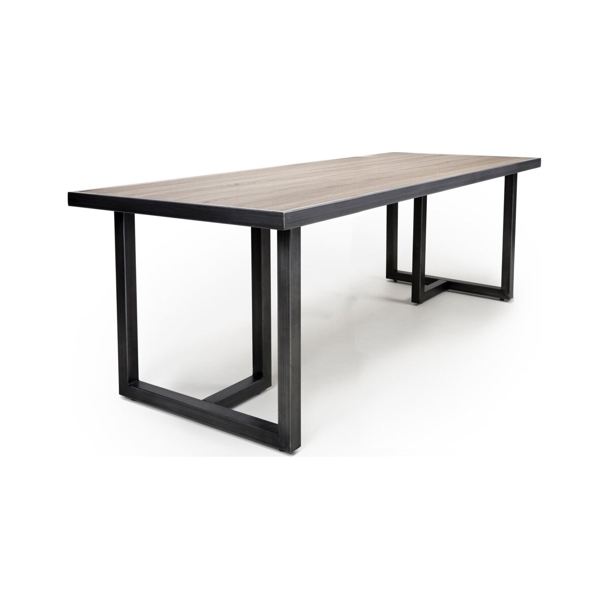 Embracing an industrial style, the metal trimmed tabletop gives both a confident and stylish finish to this table. The Bergen combines a solid timber styled surface with a powder coated steel edging and legs. At 180cm, the Bergen table seats 8 people comfortably and is the perfect space for entertaining.