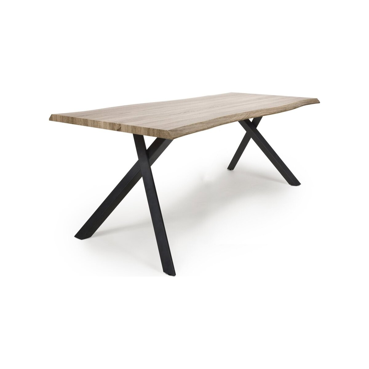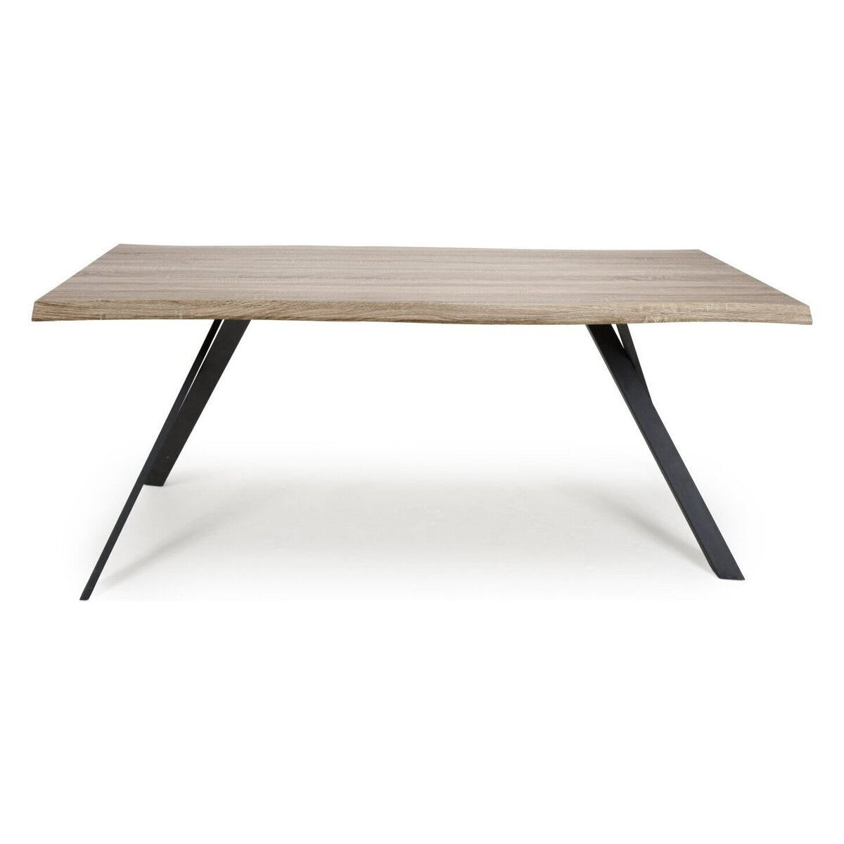 The Narvik dining table is the focal piece for any dining area. At 180cm, the Narvik table seats 8 people comfortably and with its contrasting finish between the industrial base and wavey edged top this dining table offers you the perfect space for entertaining. The tables has power coated steel legs and an oak effect MDF top.