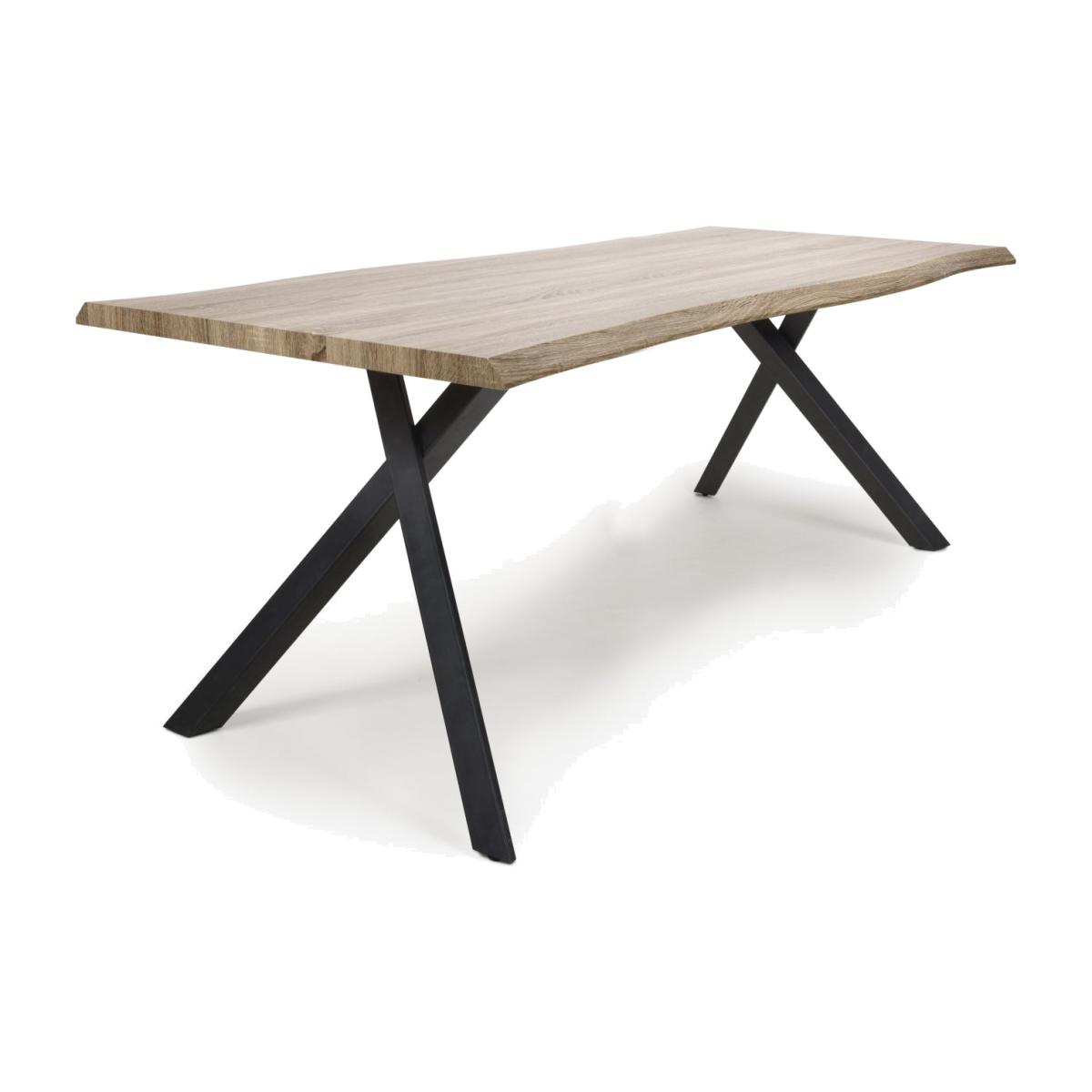 The Narvik dining table is the focal piece for any dining area. At 180cm, the Narvik table seats 8 people comfortably and with its contrasting finish between the industrial base and wavey edged top this dining table offers you the perfect space for entertaining. The tables has power coated steel legs and an oak effect MDF top.