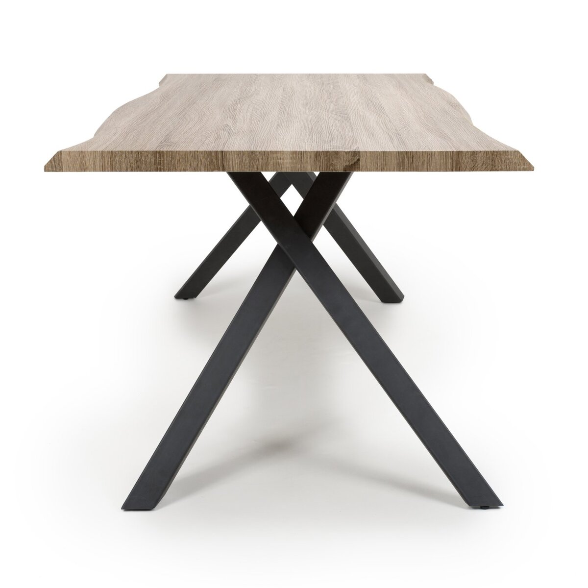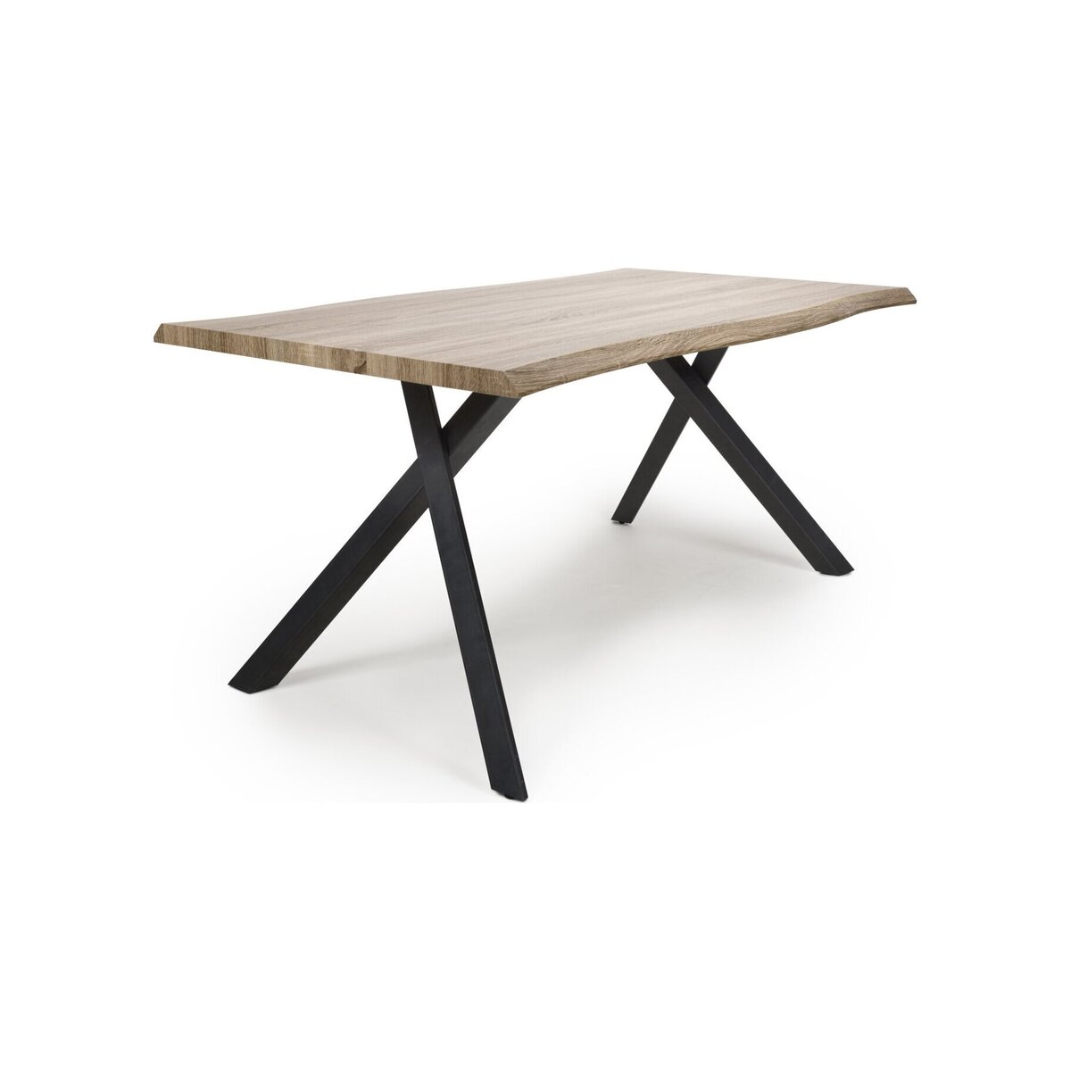 The Narvik dining table is the focal piece for any dining area. At 160cm, the Narvik table seats 6 people comfortably and with its contrasting finish between the industrial base and wavey edged top this dining table offers you the perfect space for entertaining. The tables has power coated steel legs and an oak effect MDF top.