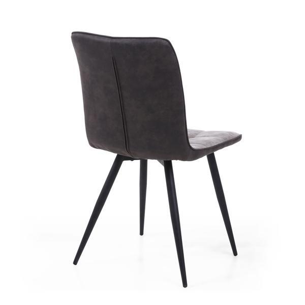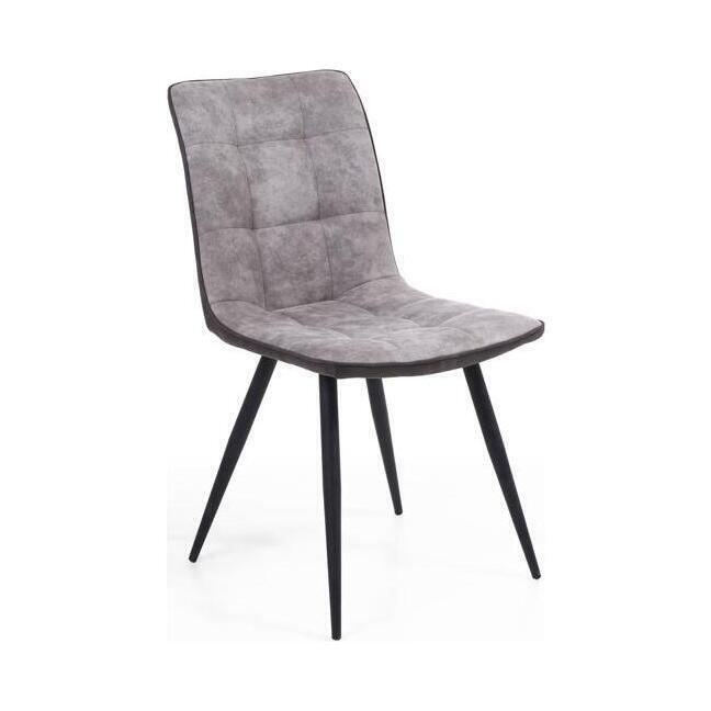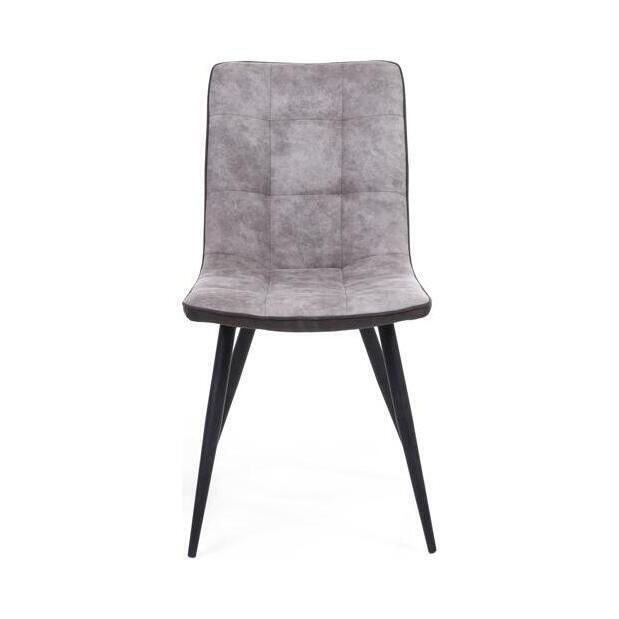 An invitingly curved modern twin tone suede effect dining chair. Light grey padded seat with smooth dark grey rear. Feature zip on the seat back. Supplied with black rubberwood tapered x frame legs. Assembly required. Sold in boxes of 2.