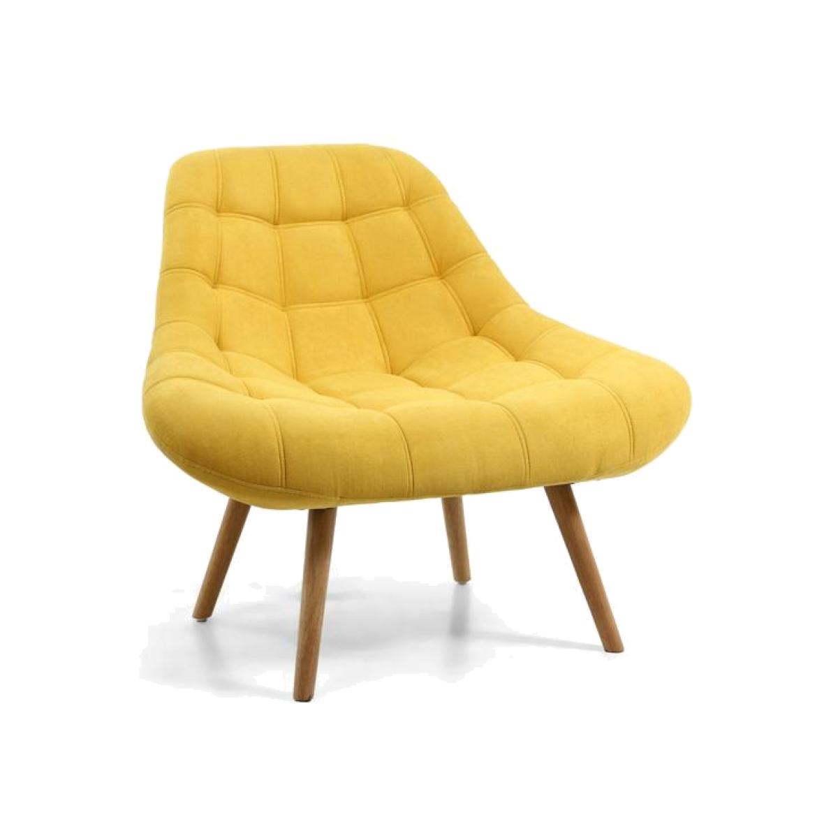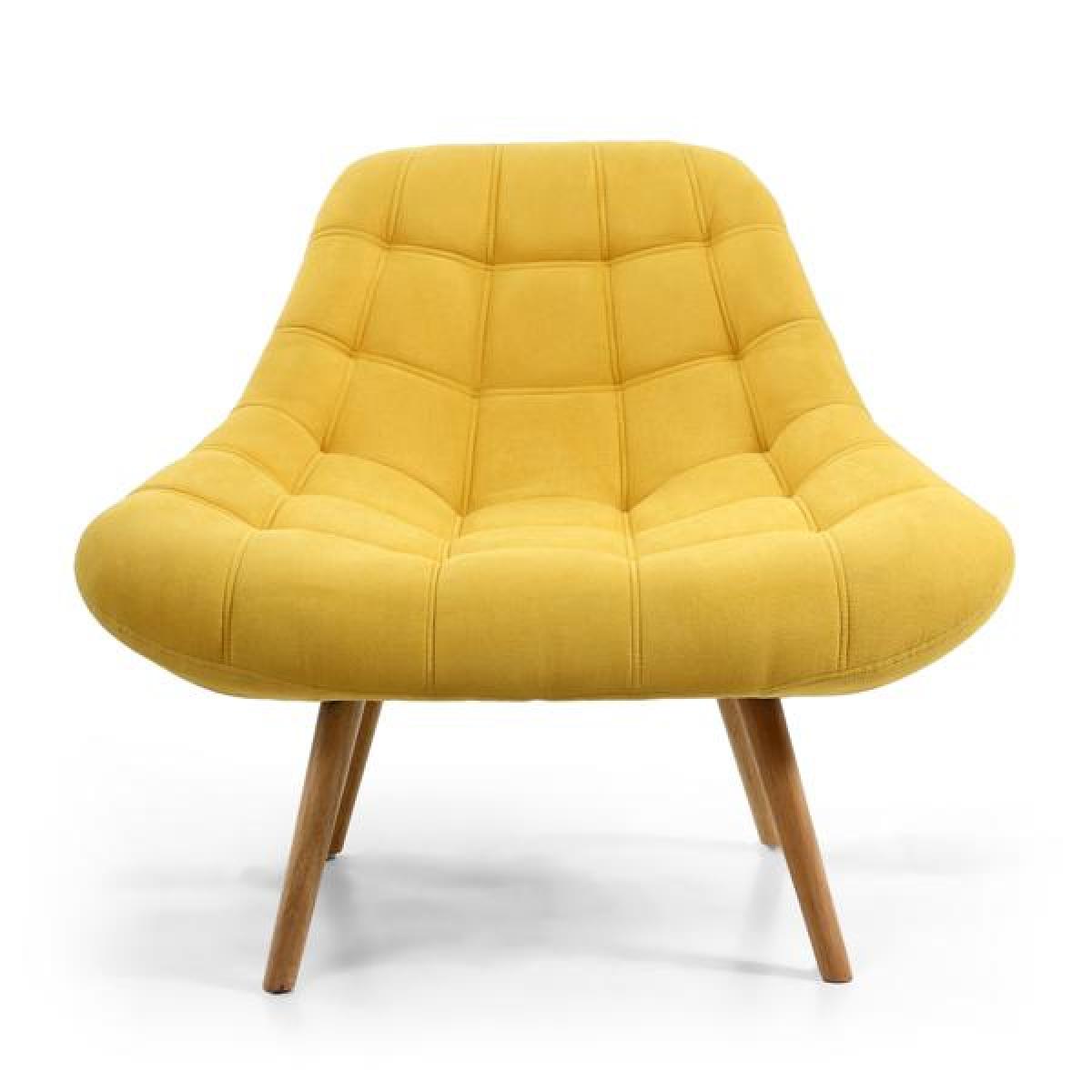 A stunning vibrant shell inspired armchair, upholstered in smooth yellow chenille effect fabric. Padded quilted seat for extra comfort. Supplied with tapered natural rubberwood legs. Leg assembly required. Sold individually.