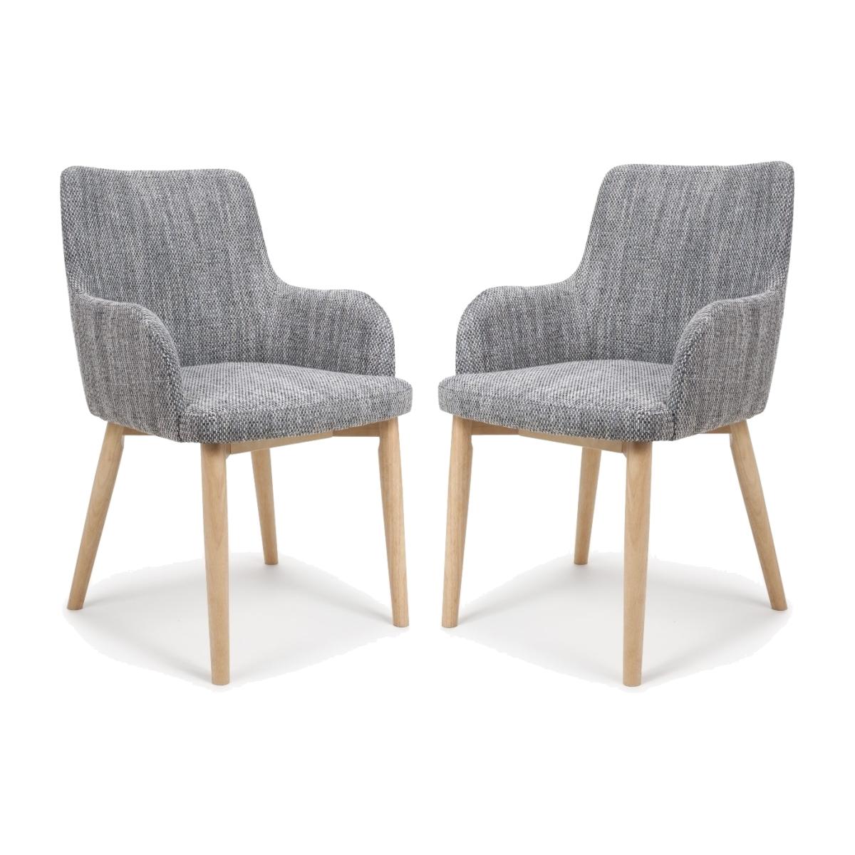 Dimensions H84 x W51 x D64 cm. The Sidcup collection of chairs in striking grey Tweed are sure to create a stylish atmosphere to any dining experience. Simple lines with softened edges offers pure relaxation whilst the clean look signifies a sophisticated sense of style. Sprung seat for additional comfort and support. This chair features natural rubber wood legs. Features. Set of 2 Sidcup dining chairs. Natural grey tweed fabric Contemporary luxurious design Sprung seat for additional comfort Solid wood legs. Simple leg assembly required..