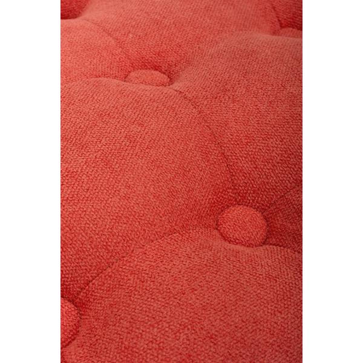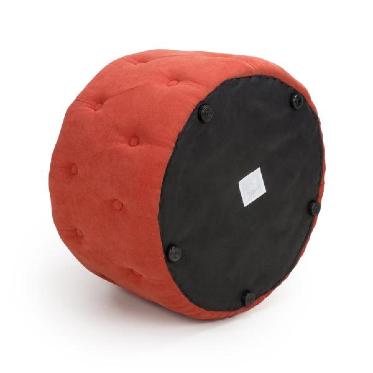A versatile and practical small rounded pouffe, upholstered in hard wearing brick orange linen effect fabric. Tufted buttoned all over padding. Fitted with 5 evenly spaced black ringed floor protectors. Fully assembled. Sold individually.