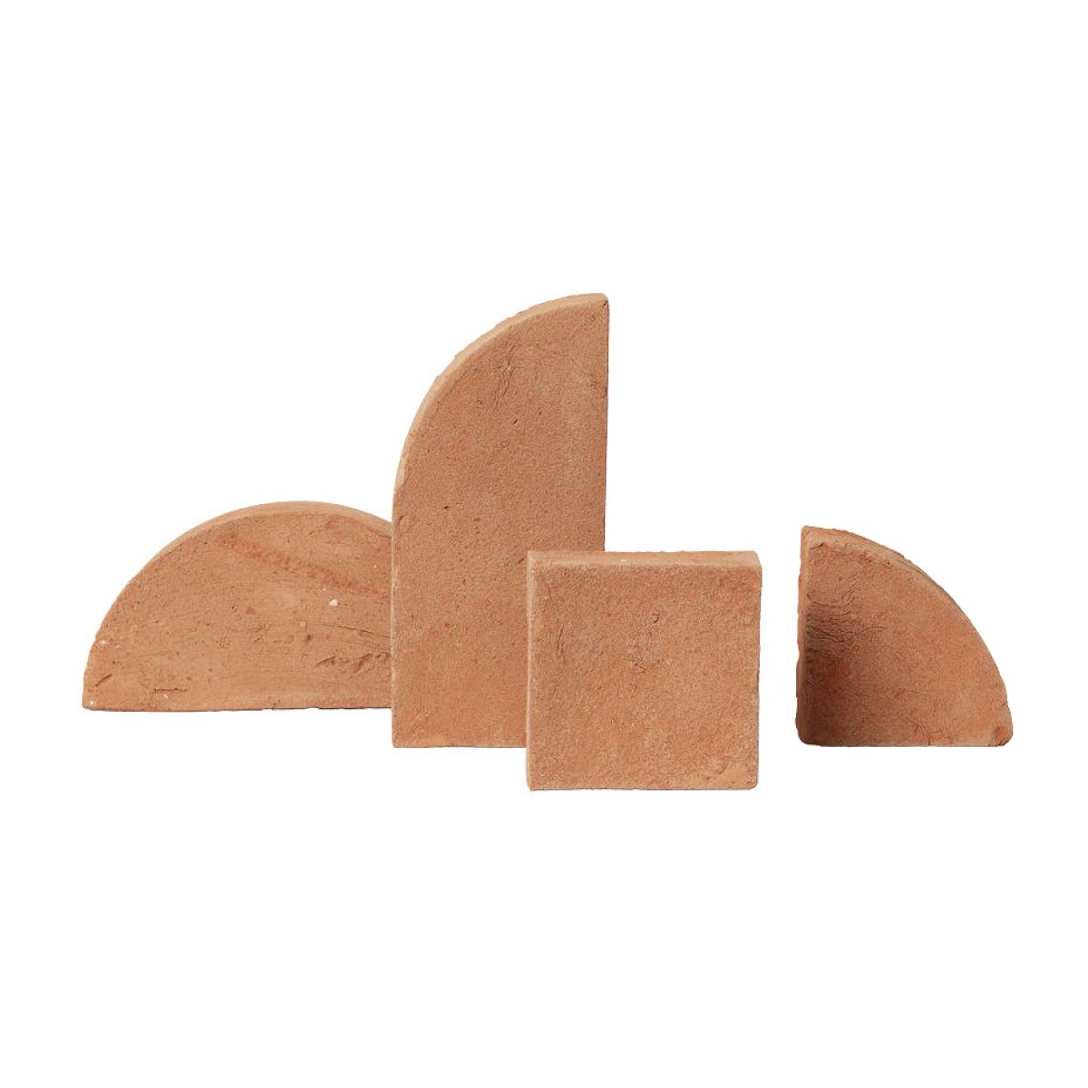 This set is composed of four pieces, hand-sculpted in Italy using the best clay from the River Po. Each piece has been formed by water, fire and human hands. The simple, geometric shapes come together and combine, creating graphic compositions. The irregular edges and coarse surface highlight the artisan and raw aesthetic. Each piece is unique and will add a tactile element to your home. Exhibit these pieces like sculptures, alone or grouped, or use them as decorative book-ends on shelving. Shape 1 (semi-circle): 12 x 5 x H 24 cm - Shape 2 (square): 12 x 5 x H 12 cm – Shape 3 (large): 12 x 5 x H 24 cm - Shape 4 (quarter-circle): 12 x 5 x H 12 cm