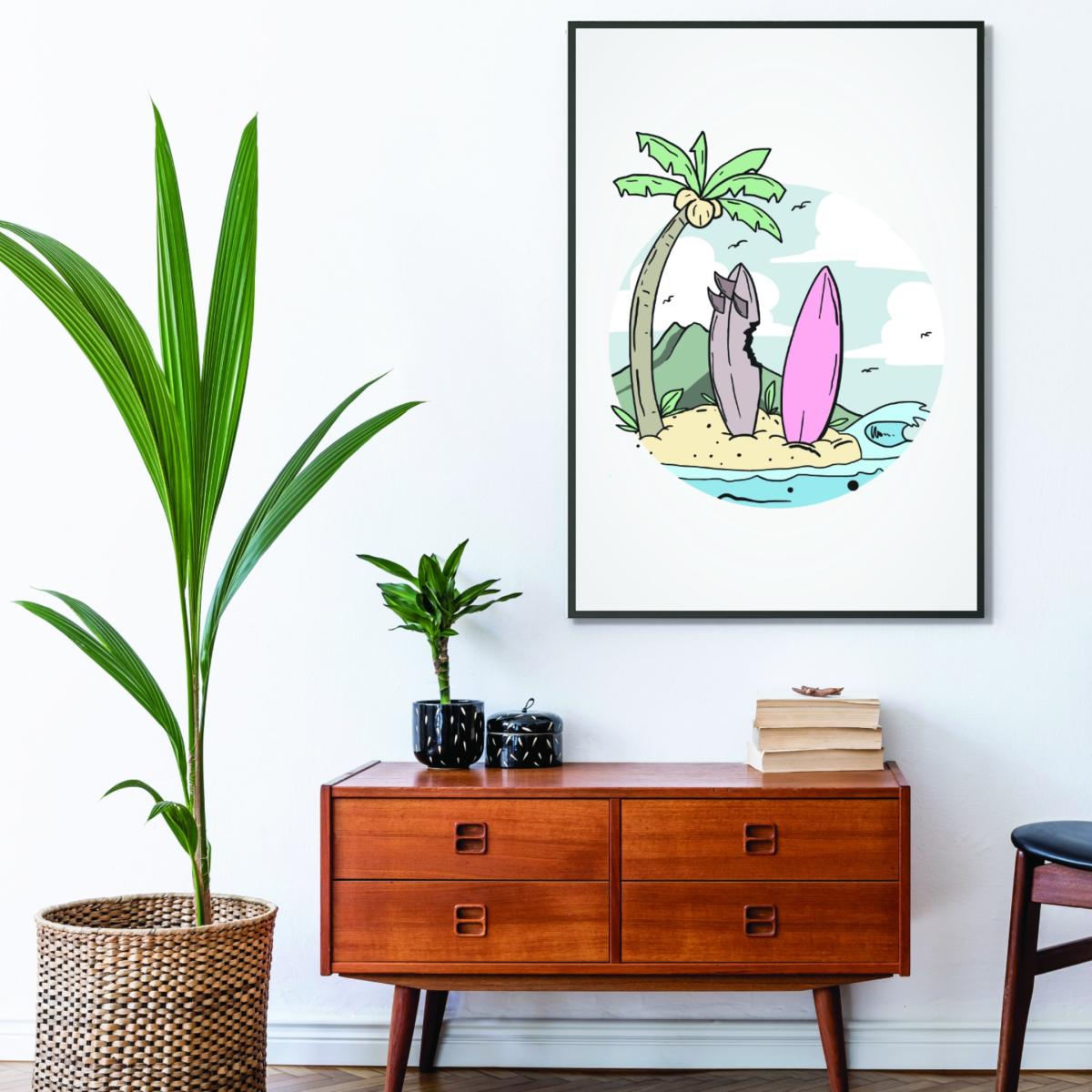 I really like this print for adding a touch of playful charm to contemporary or coastal-inspired interiors. Its fun, colourful depiction of a shark fin and quirky scenery makes it ideal for a teenager’s room or a relaxed living space. The A3 size makes it versatile for hung alone or as part of a gallery wall. For styling, consider pairing it with simple, neutral frames to let the artwork stand out, or mix with other prints that have a fun or tropical vibe. It works particularly well in casual, laid-back environments, bringing a bit of humour and visual interest without overpowering the space. Practical tip: it can be easily incorporated into both living rooms and bedrooms, making it a flexible choice for adding personality to the decor.