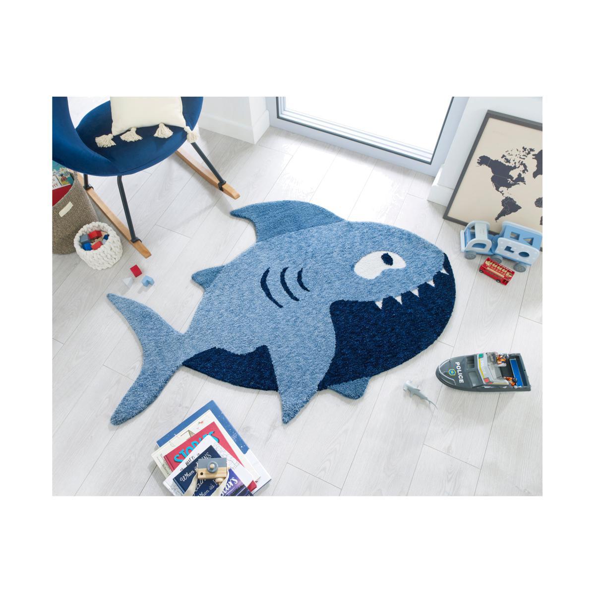 Spark little imaginations with the Shark Rug. Using playful palettes, the Shark Rug is a fun addition to children's spaces. Crafted using the cut and loop technique to add depth and texture to the different elements of design, the Sharks Rug uses 100% polyester to maximise softness and durability, perfect for the rough and tumble of playtime. A small amount of fibre loss is normal. Do not pull loose fibres, just trim with scissors. Safe for use with anti-slip backing on a heated floor. Use a suction type vacuum - rotating brushes may damage this rug. Re-roll your rug pile out for 24 hours to reduce curling. Regularly turn to ensure even wear. An anti-slip mat will help prevent slipping. Blot spills immediately with a clean, dry white cloth. Do not rub. Do not place this rug near an open fire. Please do not leave children or infants unattended.