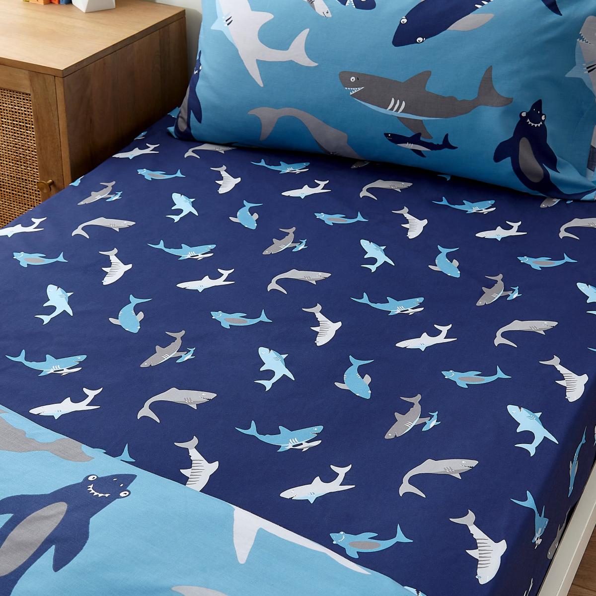 Sharks Pack of 2 Fitted Sheet Blue