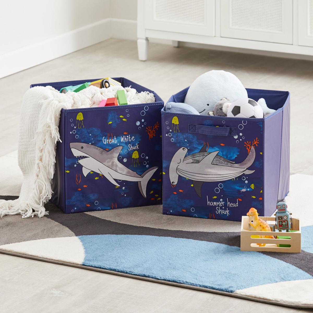 Featuring a fun sharks design, this twin pack of storage boxes is ideal a ideal for decluttering the room without compromising style. Each box folds flat when not in use, saving space in your home. Coordinate with our range of shark bedroom accessories to complete the look.