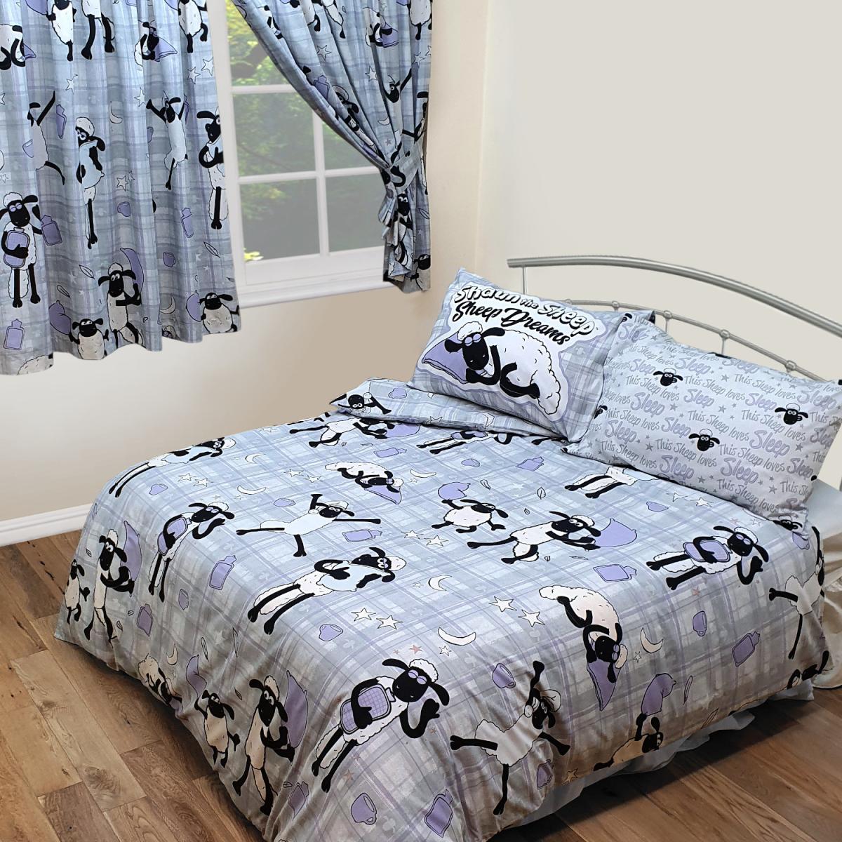 Fun Shaun The Sheep bedding range in shades of grey and lilac. Matching curtains also available. Perfect for your Children or any Shaun the Sheep lovers.
