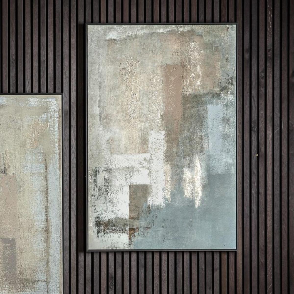 I love this piece because the gold foil framing adds a touch of luxury that instantly elevates any space. It works particularly well in modern or contemporary interiors, especially those with neutral colour palettes or textured wall finishes, like wood or brick. The abstract design is versatile, making it a great statement piece without overpowering the room. For styling, consider pairing it with other metallic accents or minimalist décor to keep the look cohesive. Hanging it at eye level above a console table or sofa creates a focal point, but ensure it has enough breathing room around it to allow its shimmer to really stand out.
