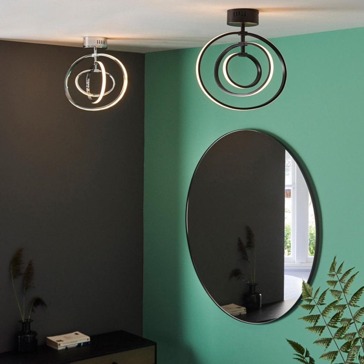 Introducing our Shayla flushed ceiling light; a futuristic, modern take on lighting. This black metal pendant has adjustable hoops with an integrated LED strip inside for a warm, energy-saving glow. Allowing you to position lights where needed the Shayla is perfect for living rooms or hallways.