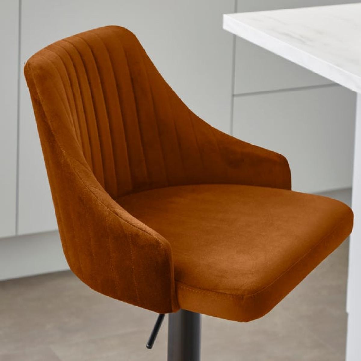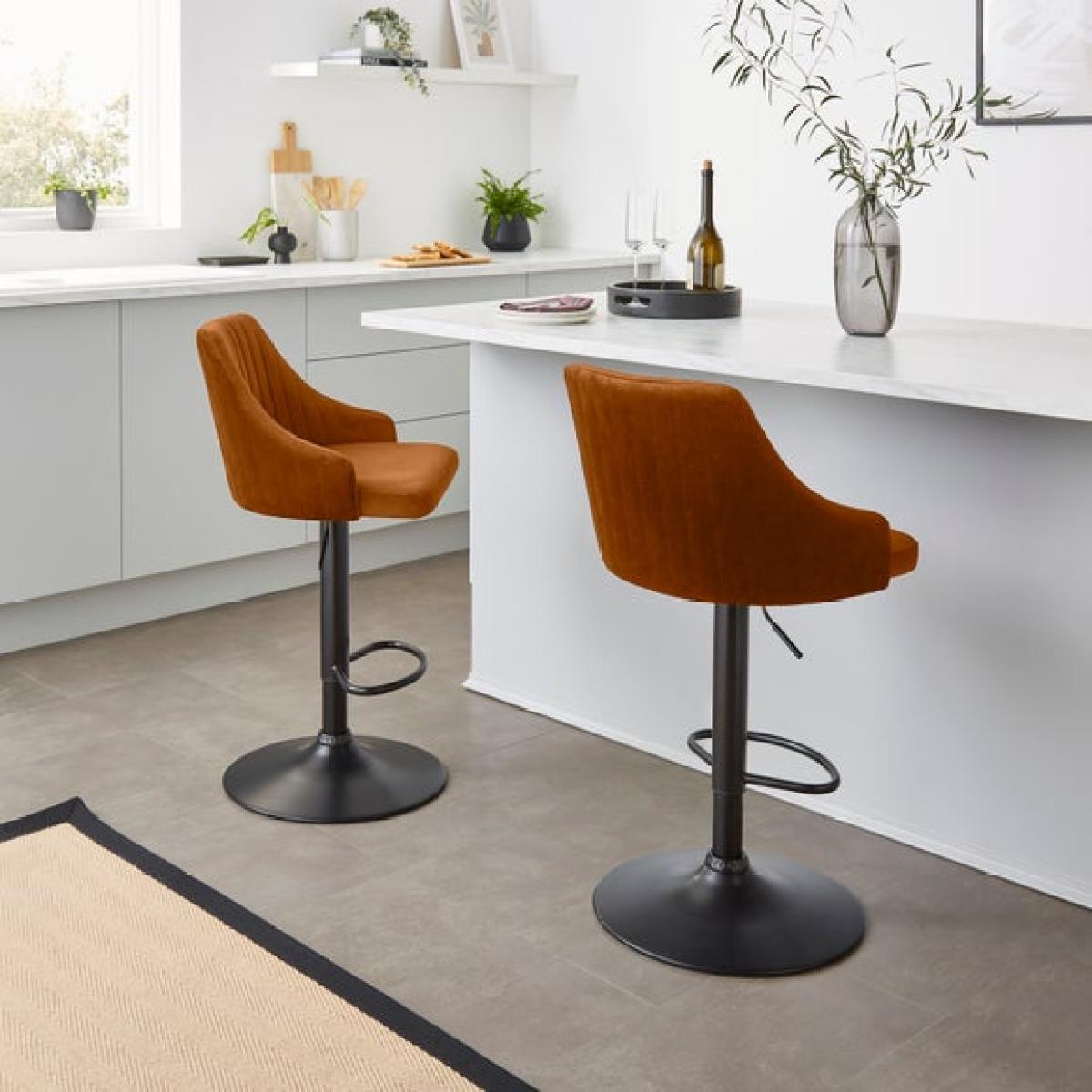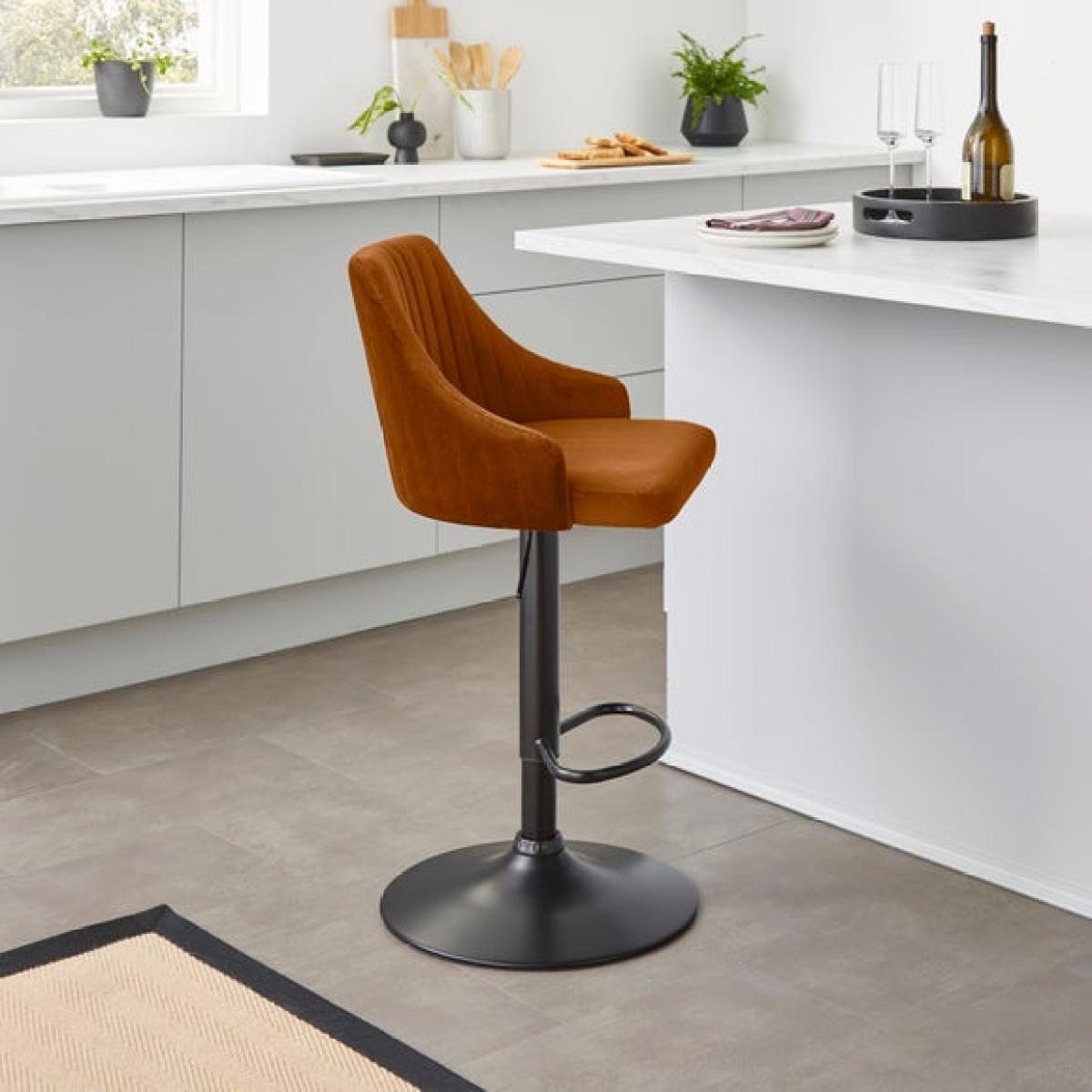 I really like this barstool for its sleek, modern look with a comfortable velvet finish that adds a touch of luxury to any space. Its adjustable height makes it versatile, perfect for both contemporary kitchens and casual breakfast bars. The velvet upholstery offers a plush feel and is ideal in interiors with soft textures or a touch of glamour. To style it well, consider pairing with a minimalist or industrial-themed kitchen, keeping accessories simple to let the rich velvet and warm tones stand out. Practical tips include using it with high-gloss surfaces or wooden worktops to create a balanced look, and adding a small cushion for extra comfort if you’re planning to sit for longer periods.