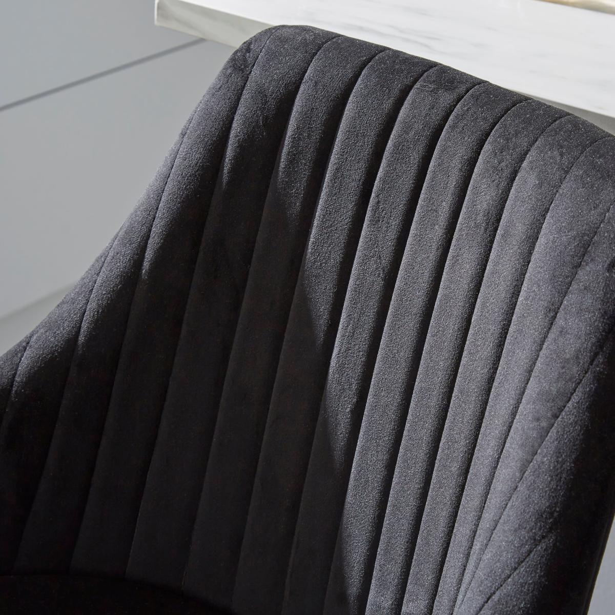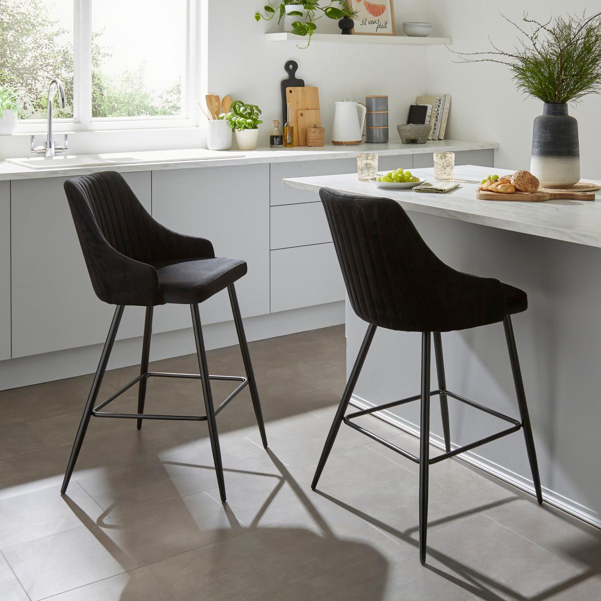 I’m a fan of this velvet bar stool for its mix of comfort and streamlined design - the gently ribbed back gives just enough texture without overwhelming the space. It works particularly well in contemporary, Scandi or industrial-inspired kitchens where you can contrast the soft upholstery with metal or timber surfaces. For styling, keep the surrounding palette neutral and introduce a single accent tone through a cushion or small vase on the island; it’s also worth spacing the stools evenly and leaving enough room for foot traffic so they stay looking neat and inviting.
