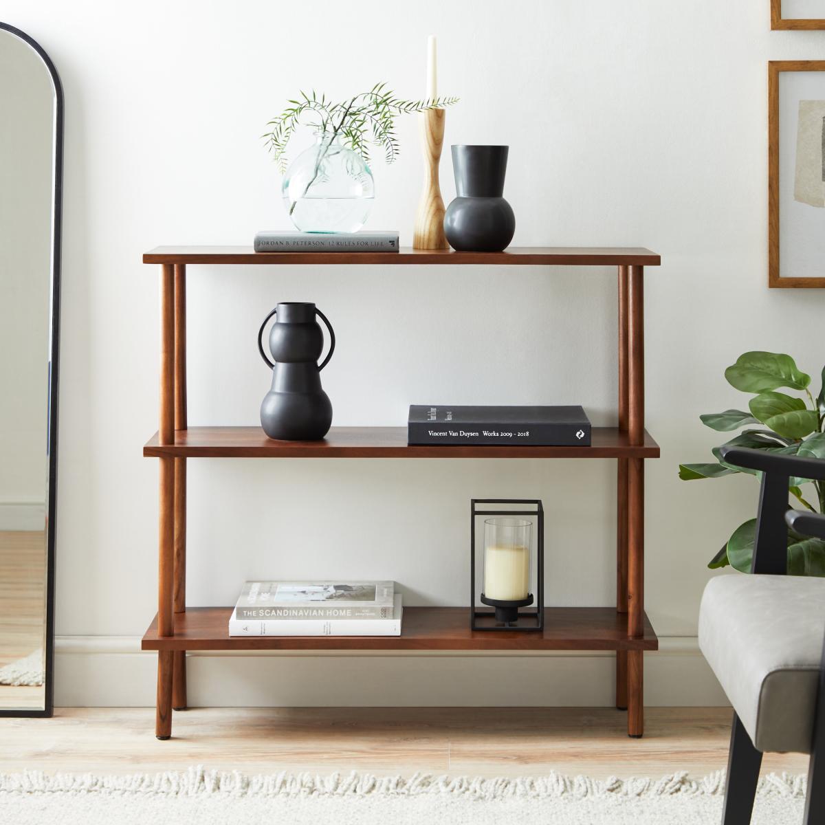 Made from a beautiful, hardwearing acacia wood, this rectangular shelf unit features clean lines and open construction. The timeless scandi look of the Sheamus side table is bound to suit any space and home and has been designed to be compact, perfect for adding storage to smaller spaces.