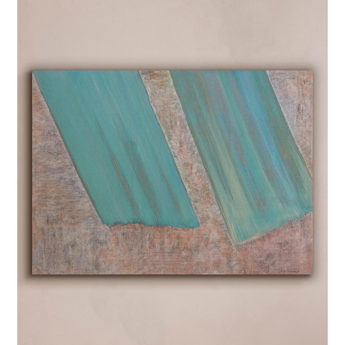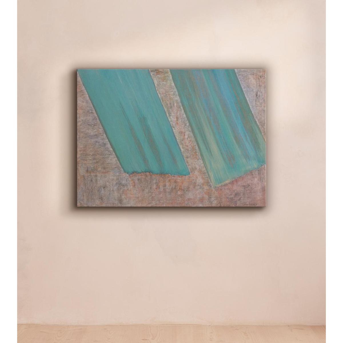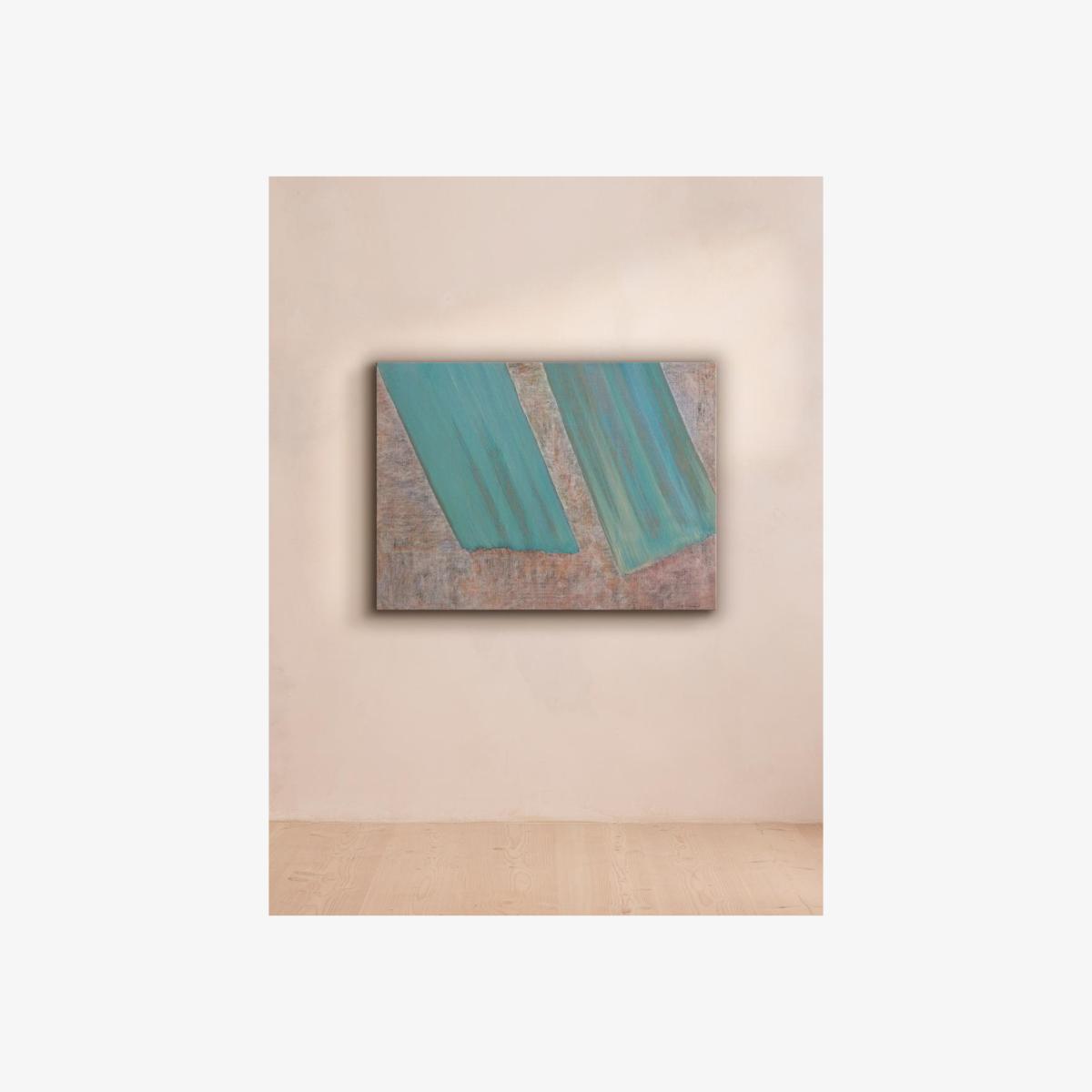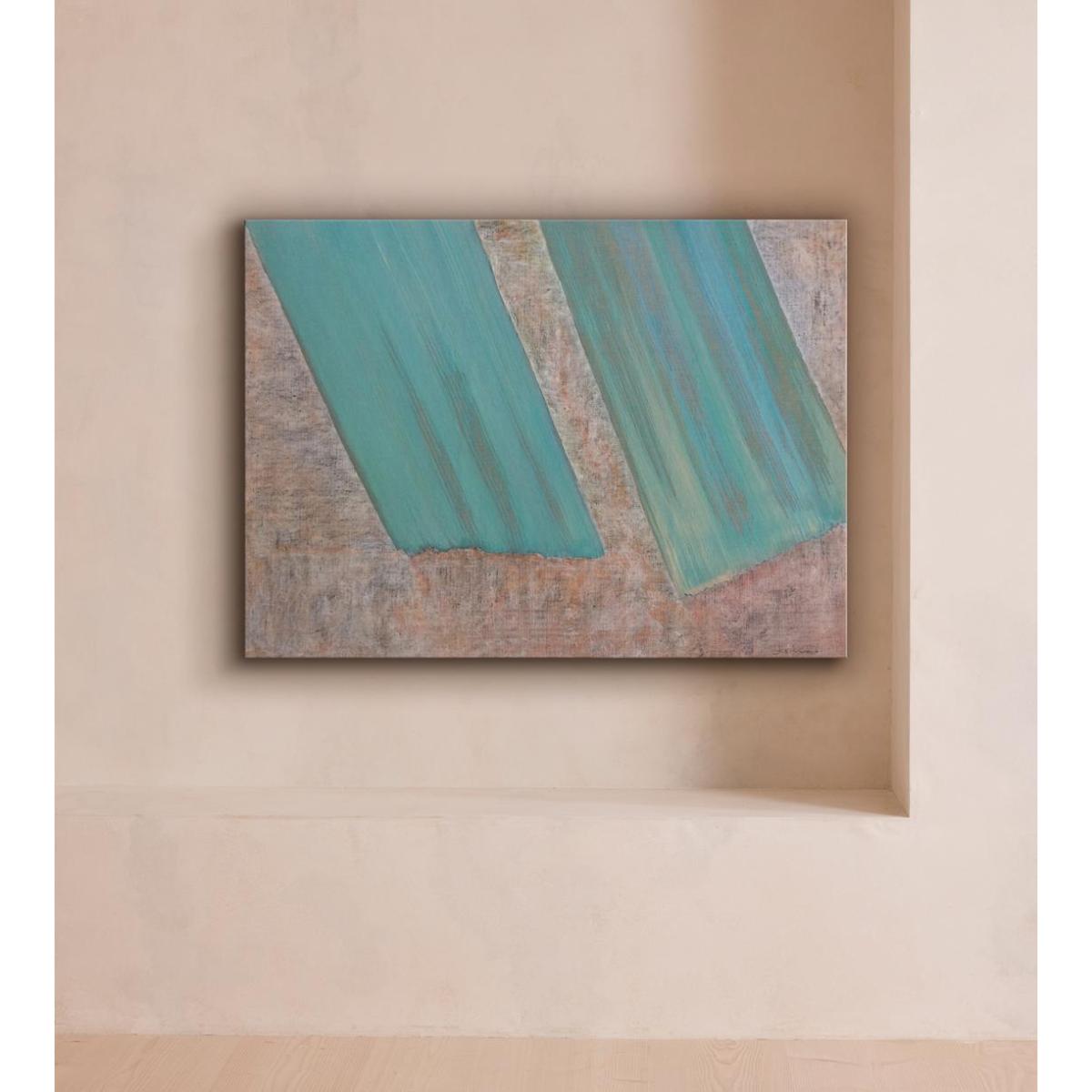 I love how the shears in sea-green adds a subtle pop of colour yet maintains a sophisticated, contemporary feel. It works particularly well in minimalist or coastal-inspired interiors, where the calm sea-green can bring a touch of serenity. For styling, consider pairing this artwork with neutral furnishings and natural textures like linen or cane to let the colour stand out without overpowering the space. It also pairs beautifully with soft metals or wood accents, creating a balanced, relaxed vibe. This piece is versatile enough to hang in living rooms, bedrooms, or even hallways, making it a great way to introduce colour in a refined, understated way.