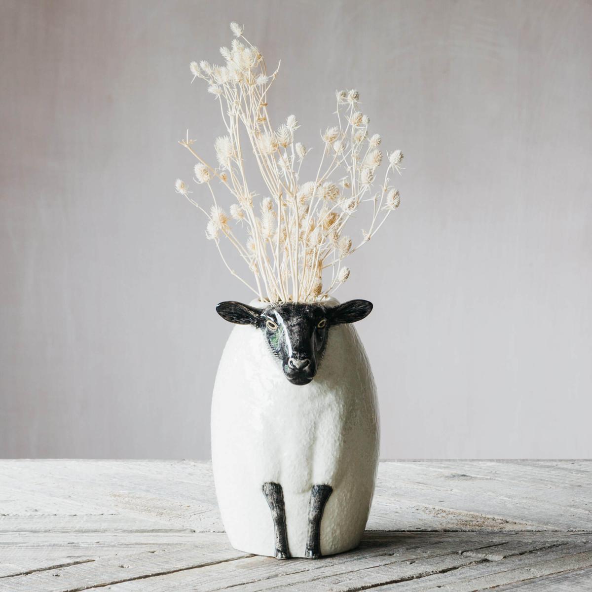 Freshen up your farmhouse with a quirky vase hand-painted to look like a classic British sheep, woolly coat and all.