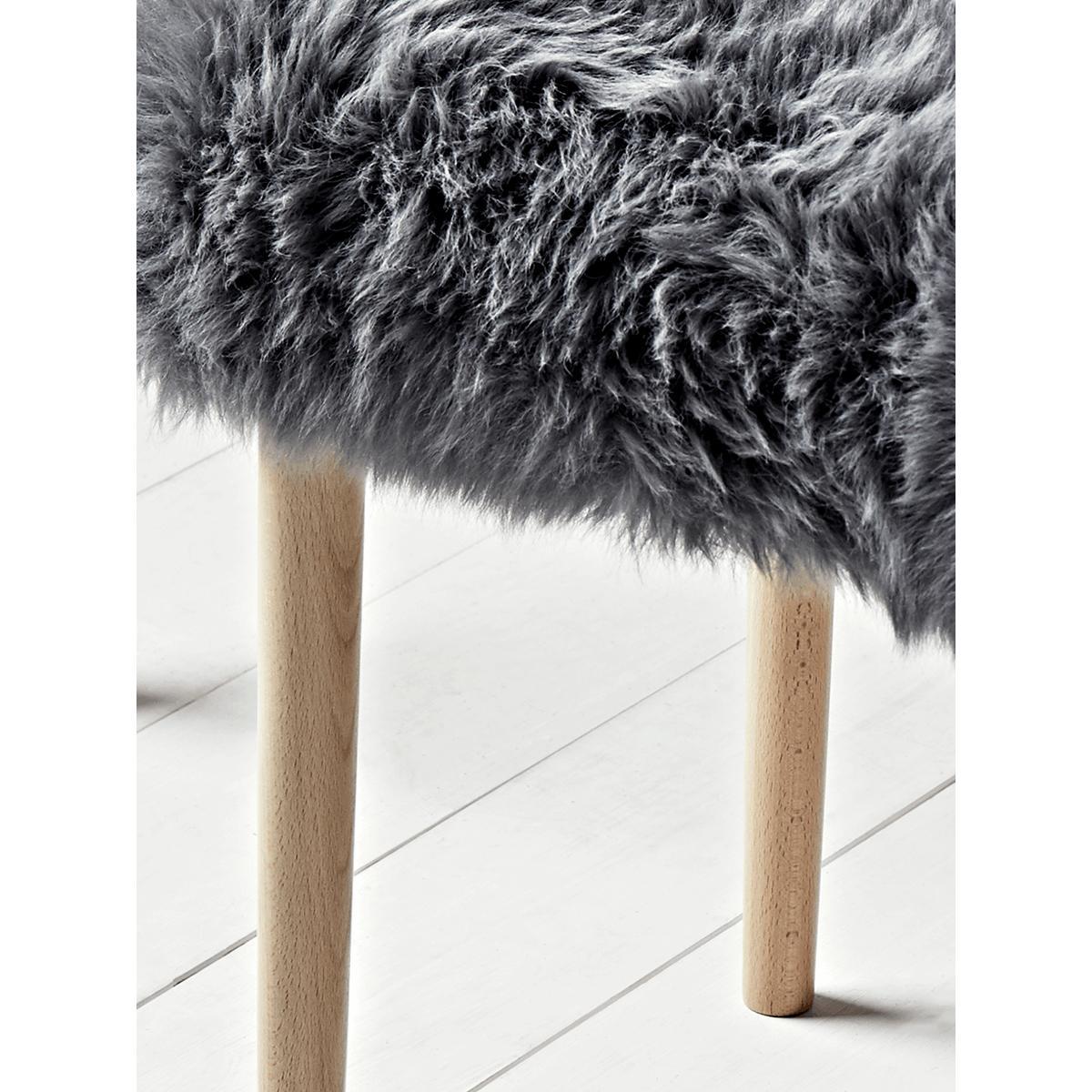 Carefully handmade in the UK, our sheepskin dressing table stool seat cover is crafted from 100% natural long haired sheepskin in a muted slate grey colour. Rectangular in shape, with four slim, tapered birch wood legs, this sumptuous stool has an upholstered, padded seat with removable sheepskin. A brush is included for cleaning. Pair with our. Bergen Oak Dressing Table. To complete the look.