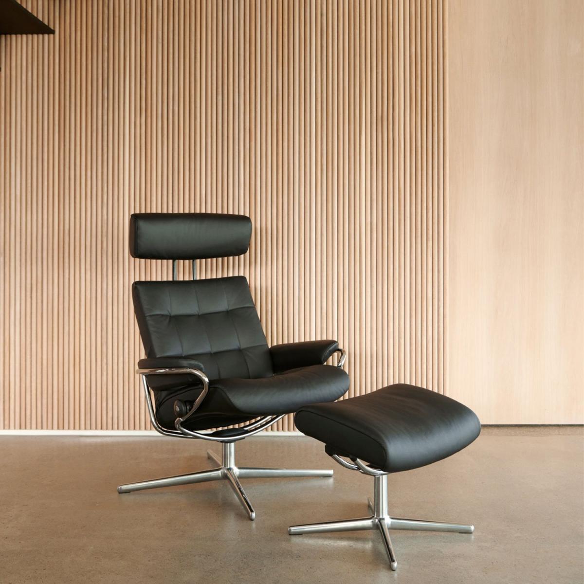 The Stressless® London recliner is inspired by the designs of the 60s. Although this beautiful recliner has got all the potential of becoming a true classic, that doesn’t mean any of the characteristic Stressless® comfort has been sacrificed. With an adjustable headrest, the matching footstool lets you put your feet up and properly relax with all the support you need, especially with the stylish yet sturdy cross base. Choose from a variety of leather swatches to make this recliner set uniquely yours.