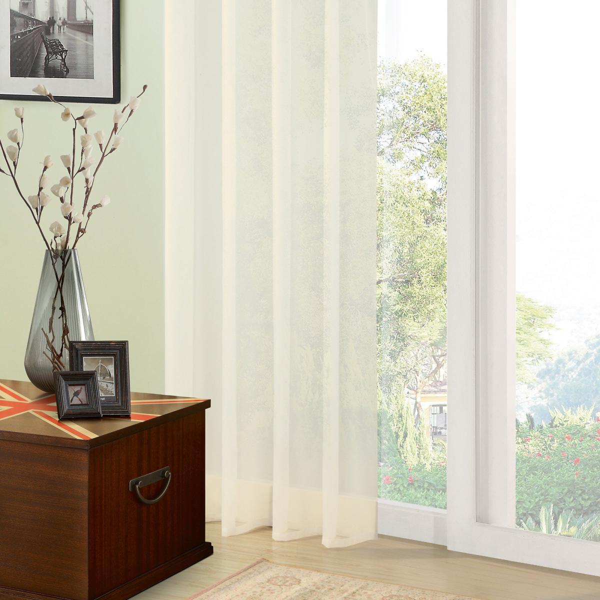 * 1x voile panel* Plain sheer design* Eyelet header for easy hanging* Sheer voile diffuses sunlight* Machine washable This voile features a plain textured finish which is perfect for complementing any room style. The sheer design diffuses sunlight while adding privacy to your home. An eyelet header is perfect for sliding onto a net rod for easy hanging. Fully machine washable for easy washing. This design now comes with an extended width size for larger windows. This Collection is verified by OEKO-TEX and independently tested for harmful substances. It stands for customer confidence and high product safety.