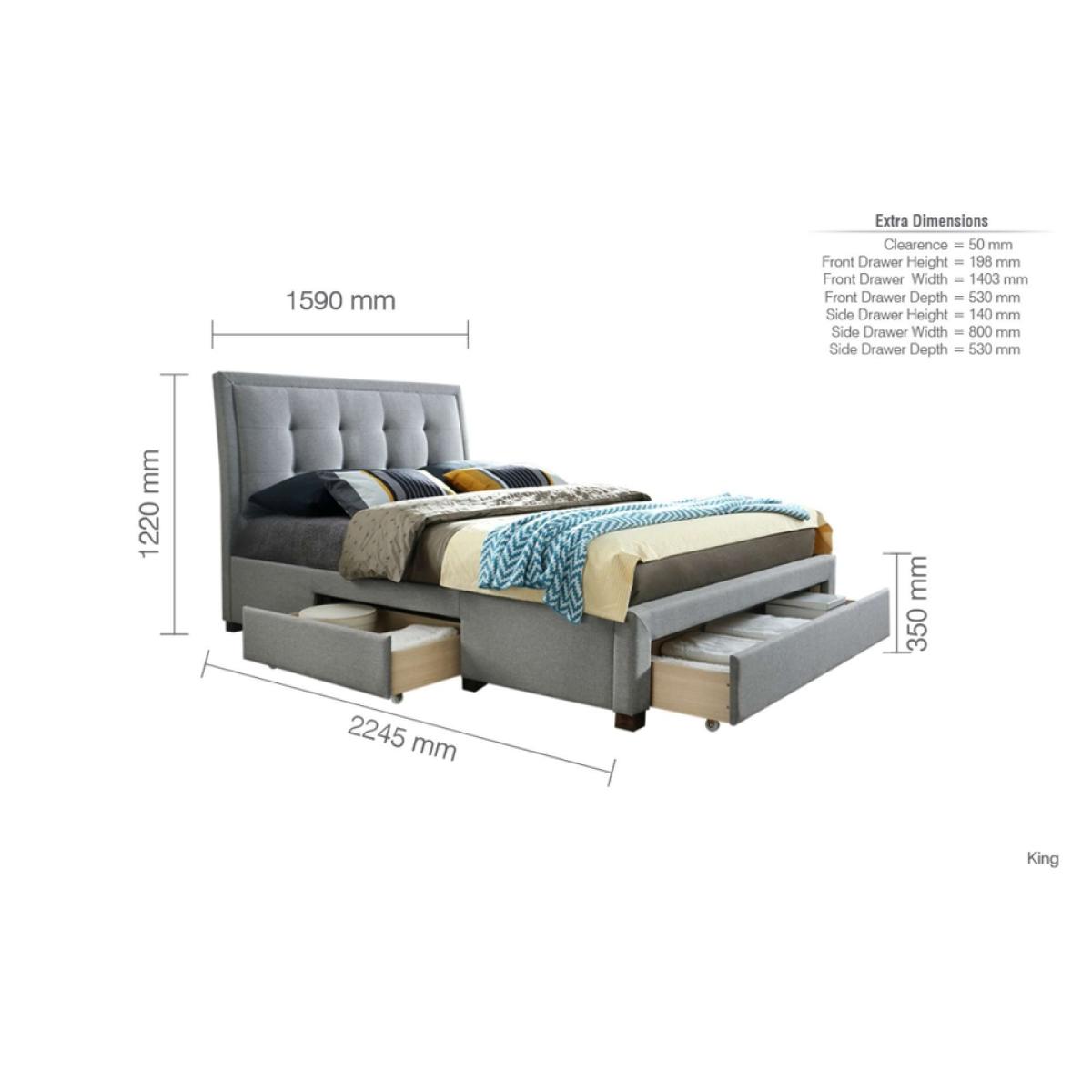 Classic and sophisticated, yet functional, the Shelby grey king bed boasts a modern frame and also conceals three useful storage drawers.Â