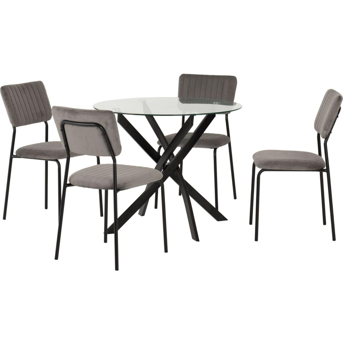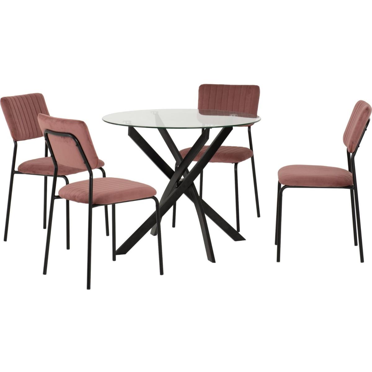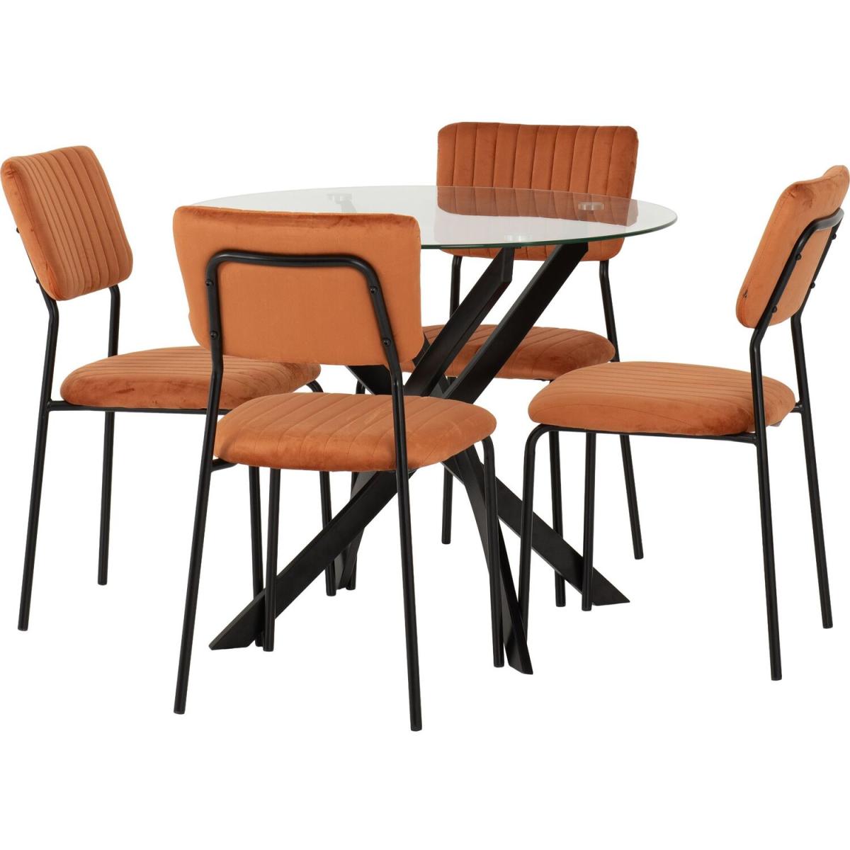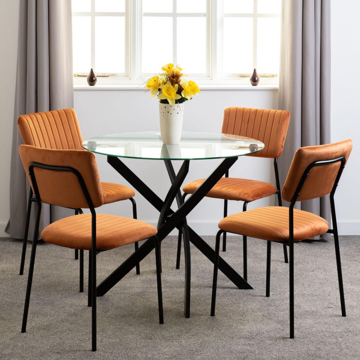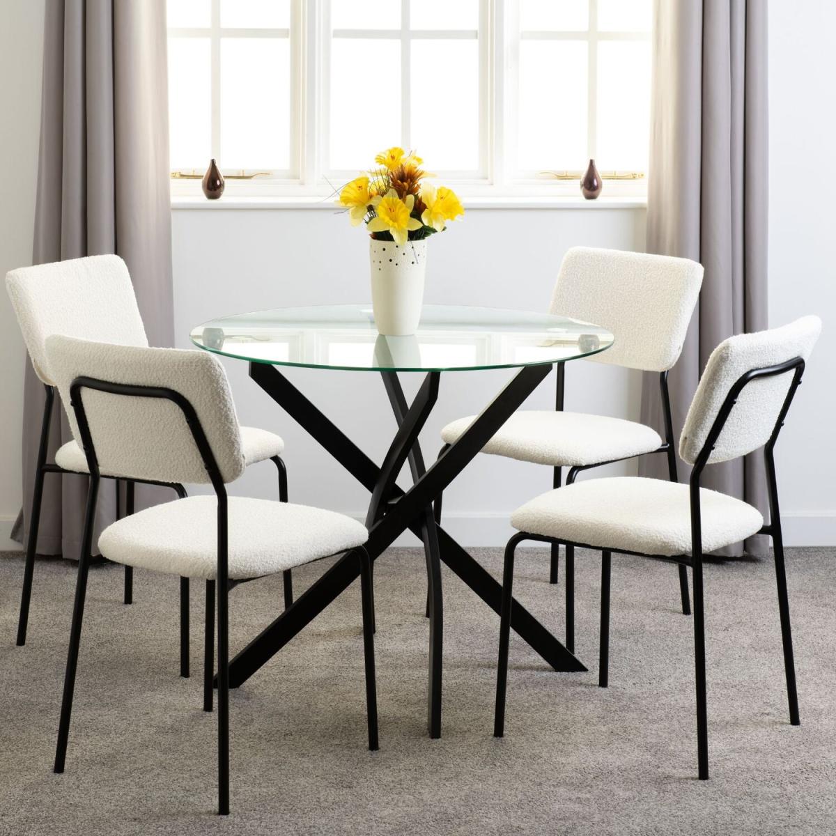 Add a modern chic style to your dining space with this set of 4 chairs and glass top table. With a variety of colours and fabrics to suit your style with the option of velvet and boucle chairs. This comfortable chair will make all you dining experiences perfect for you and your family or friends. UK Mainland delivery only, between 9am - 9pm (weekdays) the courier will contact you on the day of delivery to offer a time slot. This takes place within 10 working days (Ground floor only). Please also ensure that we have a note of your up-to-date address and contact information, to be passed to the couriers.