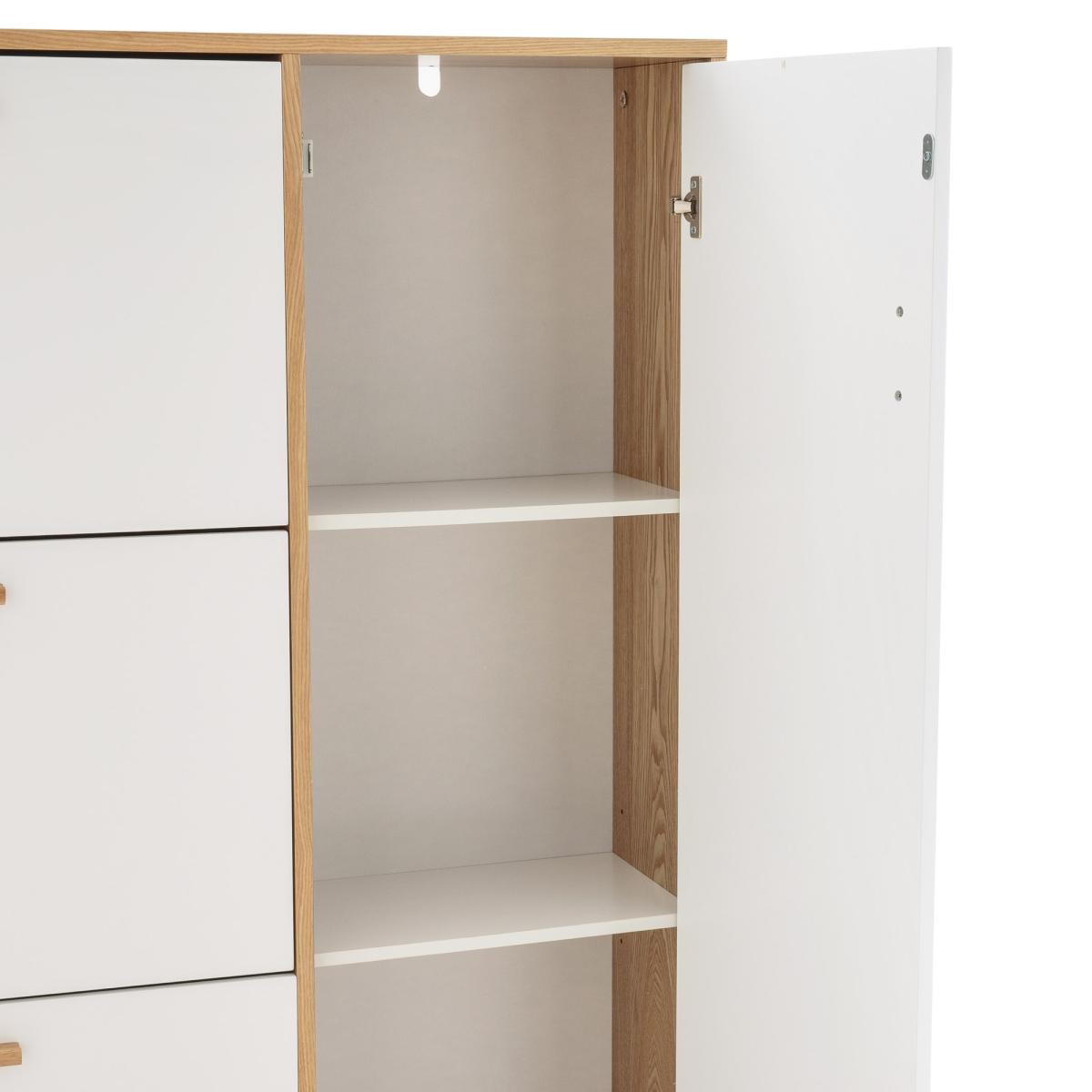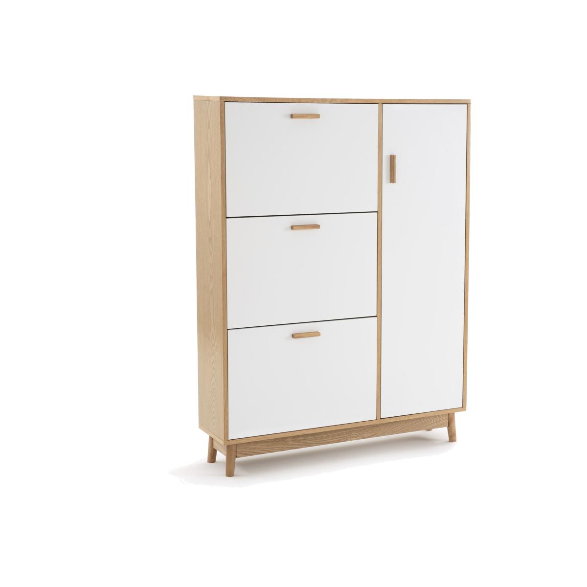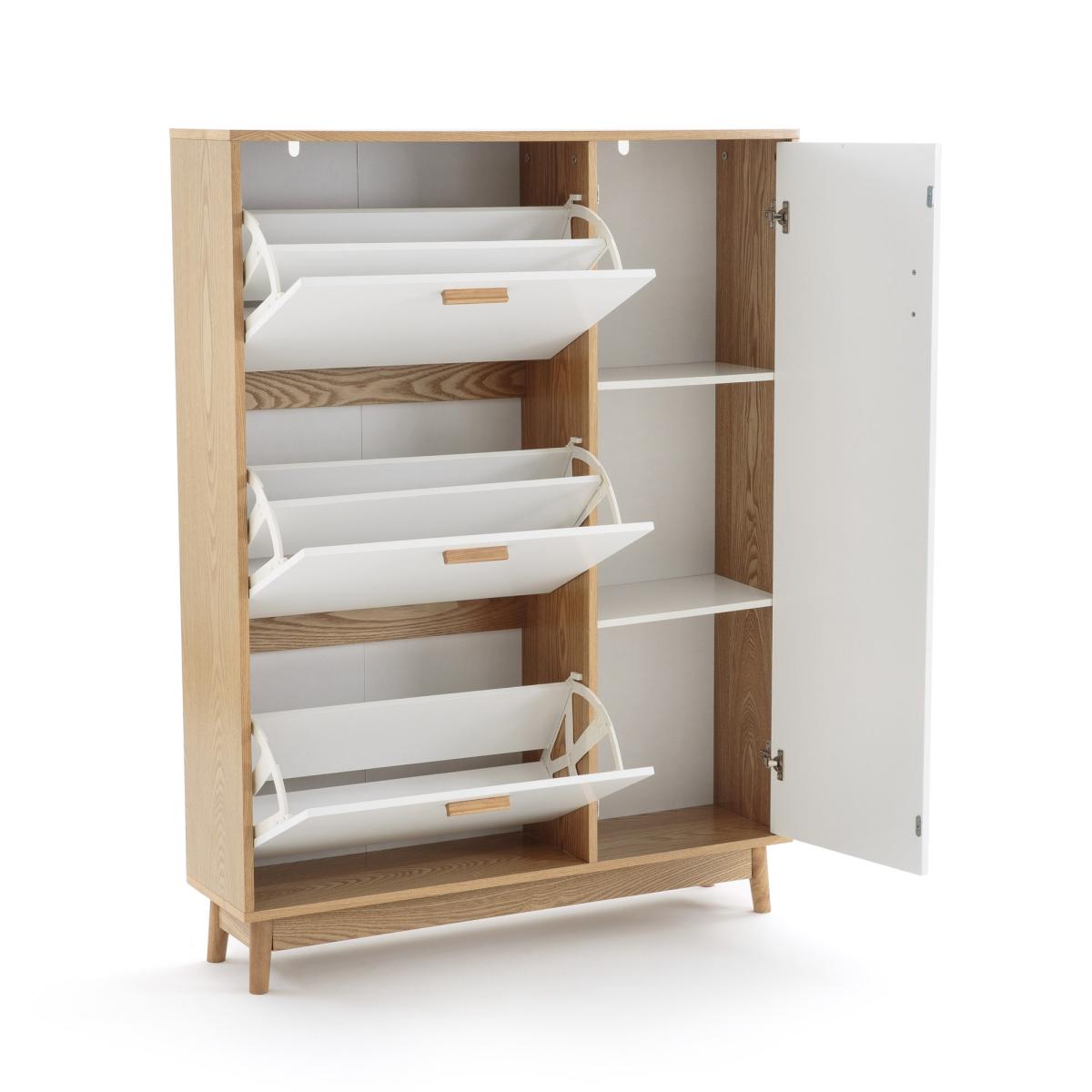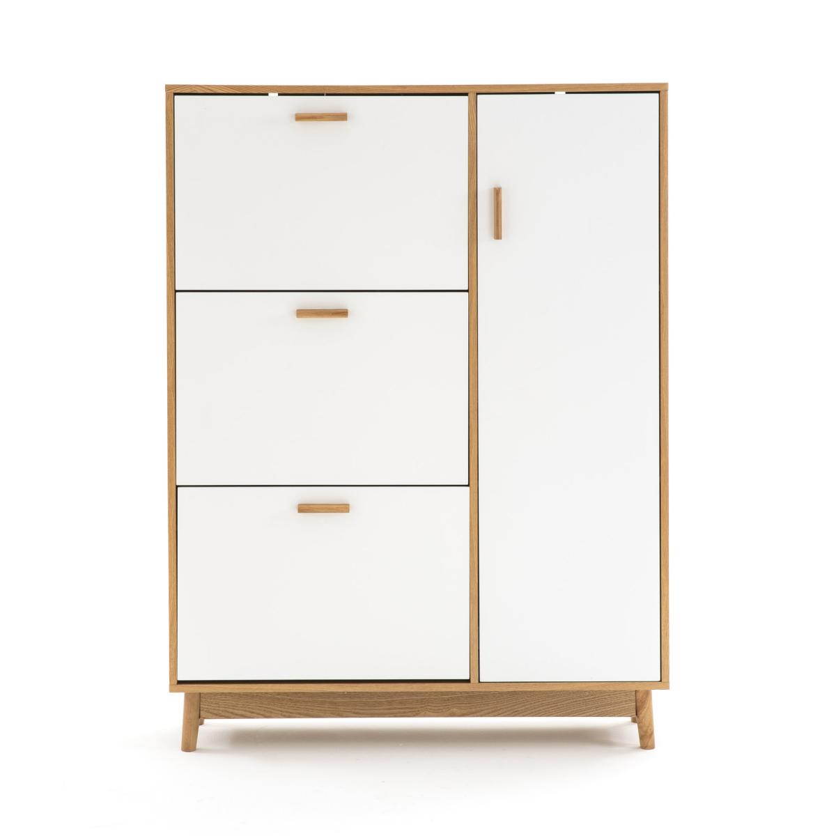 The ultimate in shoe storage, this Sheldon cabinet is a must for footwear fans everywhere. Inspired by the simplicity of Scandinavian design with 3 dedicated shoe storage areas and additional space for other essentials, it combines practicality with on-trend style.