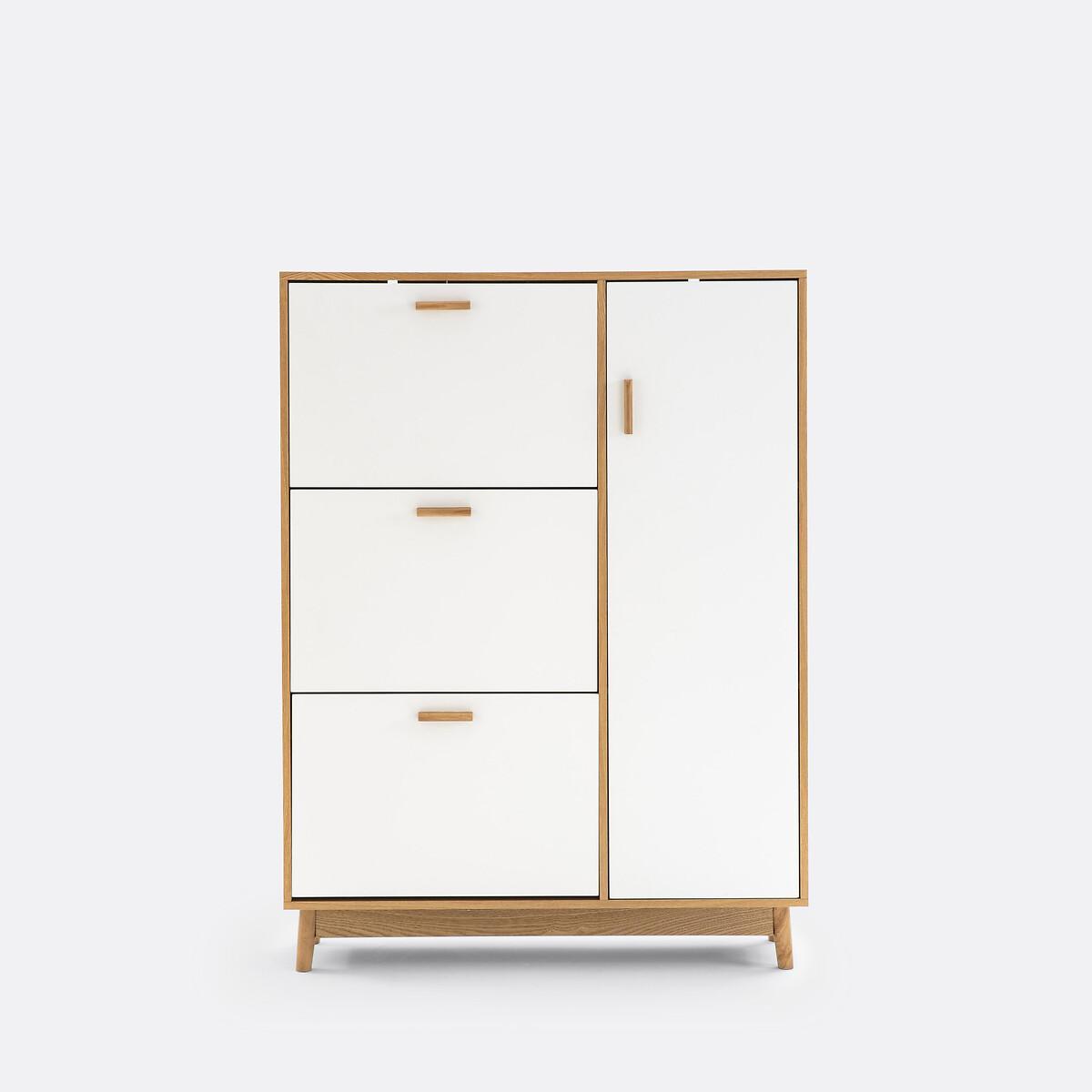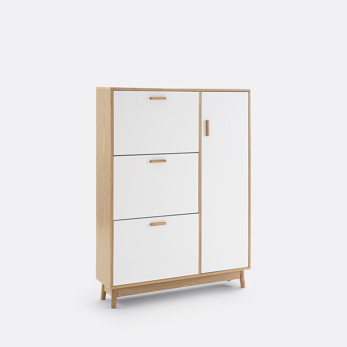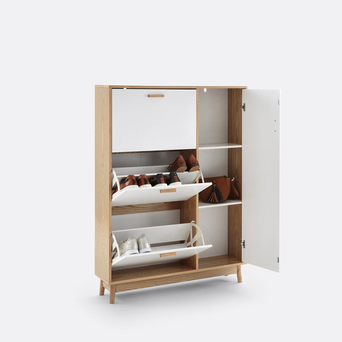 The ultimate in shoe storage, this Sheldon cabinet is a must for footwear fans everywhere. Inspired by the simplicity of Scandinavian design with 3 dedicated shoe storage areas and additional space for other essentials, it combines practicality with on-trend style.