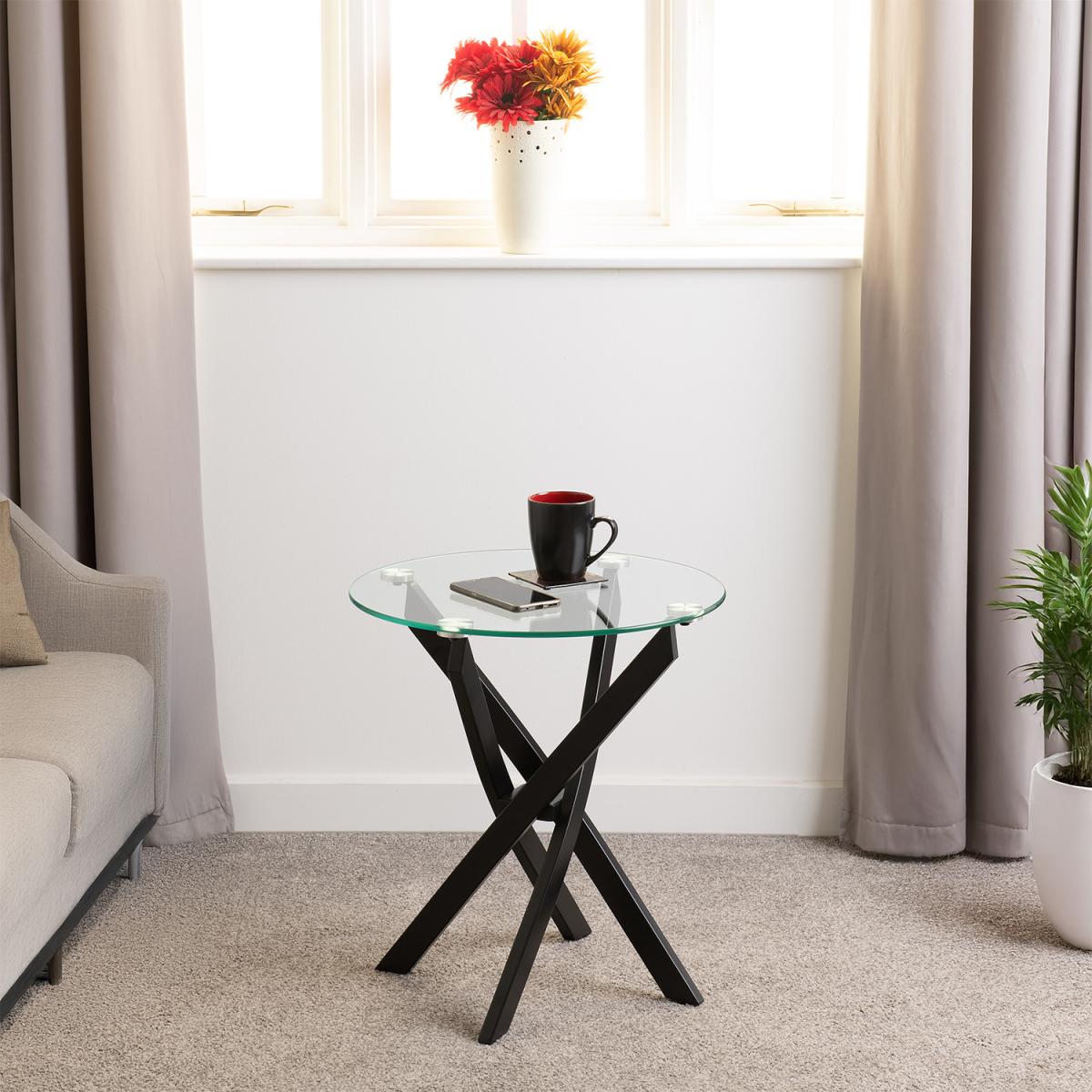 The Sheldon Side Table combines contemporary design with practical functionality. Featuring a clear tempered glass top and a sturdy black metal frame, it offers a sleek and minimalist aesthetic suitable for various interior styles. Its compact size makes it an ideal choice for smaller spaces, serving as a convenient surface for lamps, books, or decorative items. The durable construction ensures longevity, while the clean lines and modern materials contribute to its versatile appeal. UK Mainland delivery only, between 9 am and 9 pm (weekdays) the courier will contact you on the day of delivery to offer a time slot. This takes place within 10 working days (Ground floor only). Please also ensure that we have a note of your up-to-date address and contact information, to be passed to the couriers.