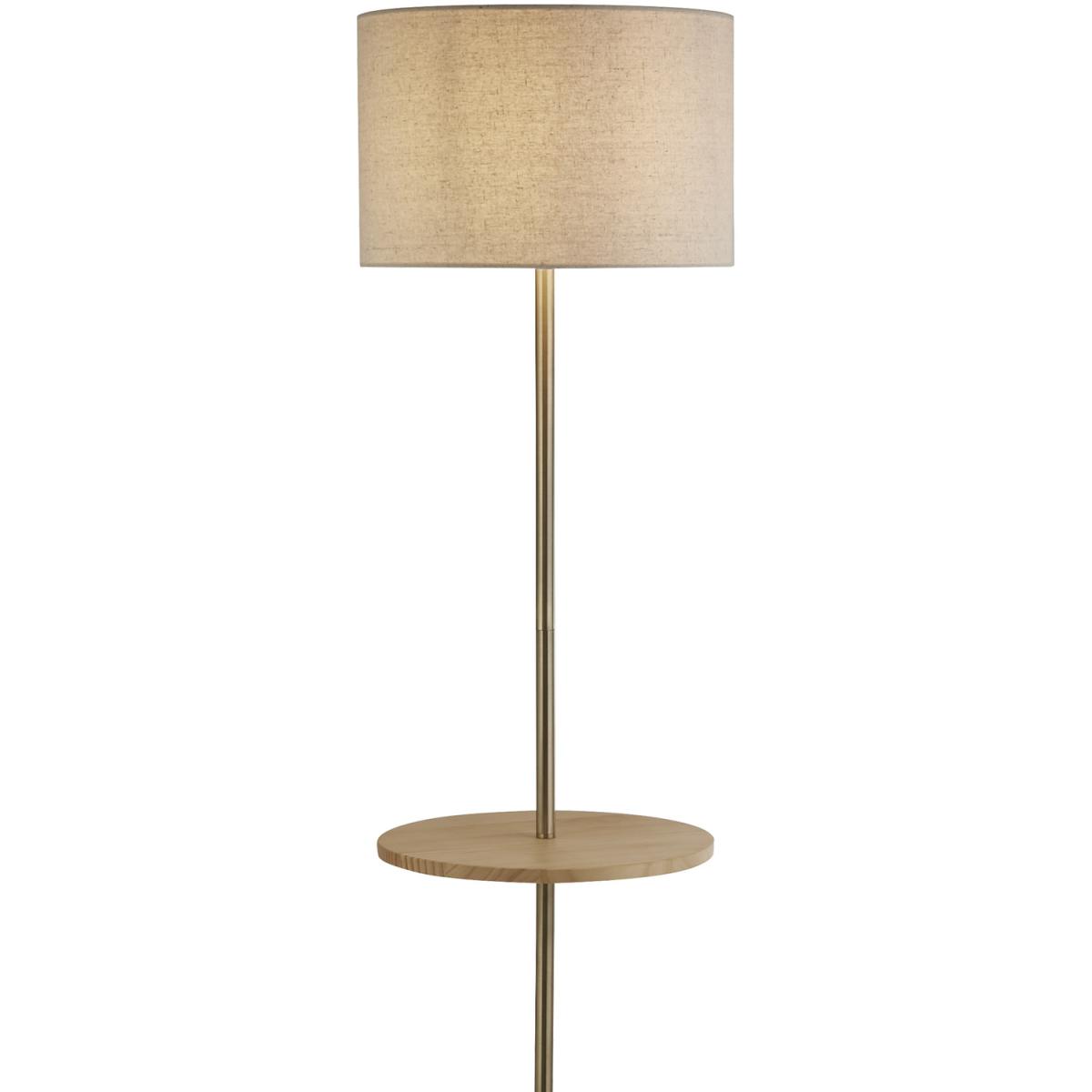 An ideal floor lamp for living rooms with limited floor space, it boasts a round wooden shelf half way up the metal stand which is perfect for ornaments, plants or your cup of coffee.