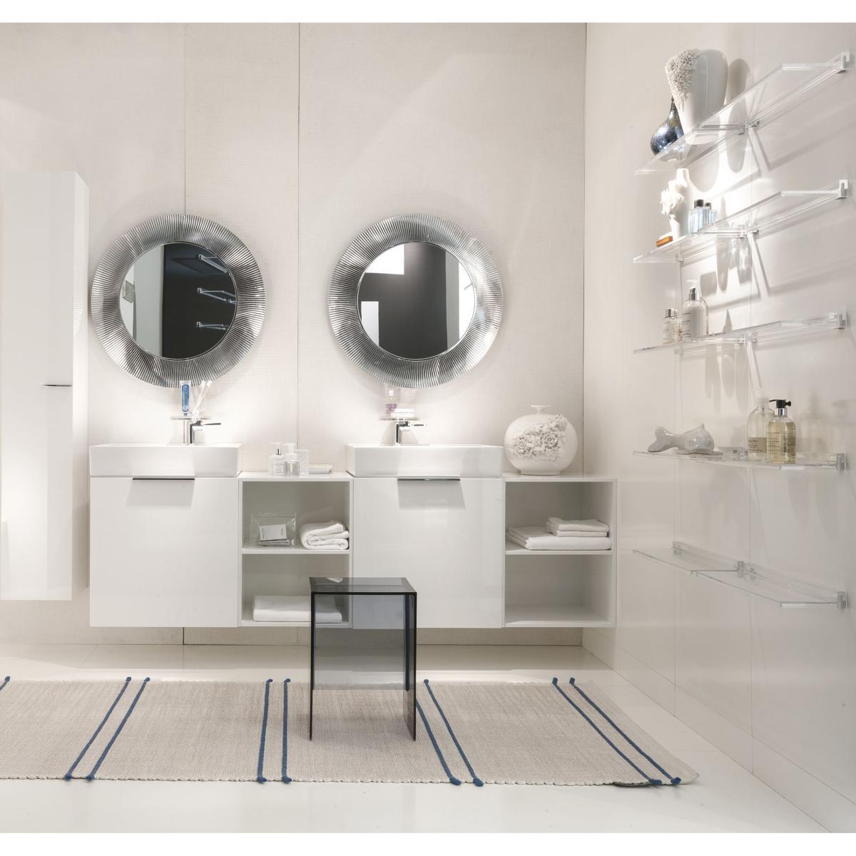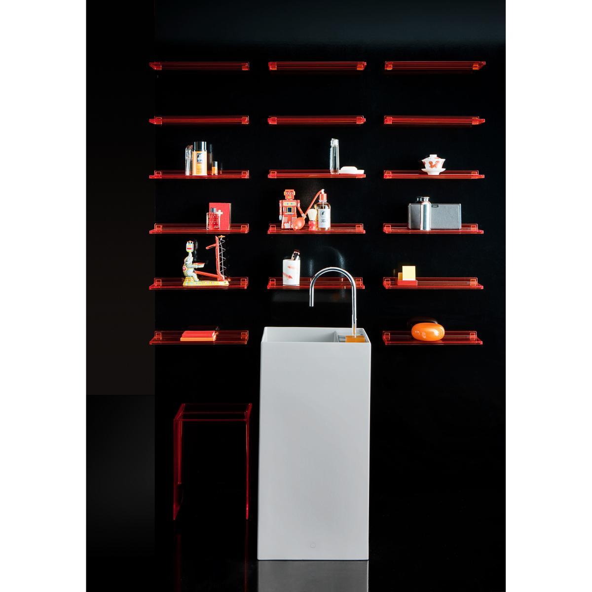 Kartell and LAUFEN are together launching an integrated and complete bathroom project. A codesigned project nurtured by the intense dialogue between the enlightened customer on the one hand the awardwinning designers Ludovica+Roberto Palomba on the other, who have earned themselves the merit of having reinvented the concept of the bathroom. The vitreous transparency of latest generation polycarbonate and the sheer edges of the totemic freestanding washbasins attract those that love minimal, lunar, rarefied white environments.