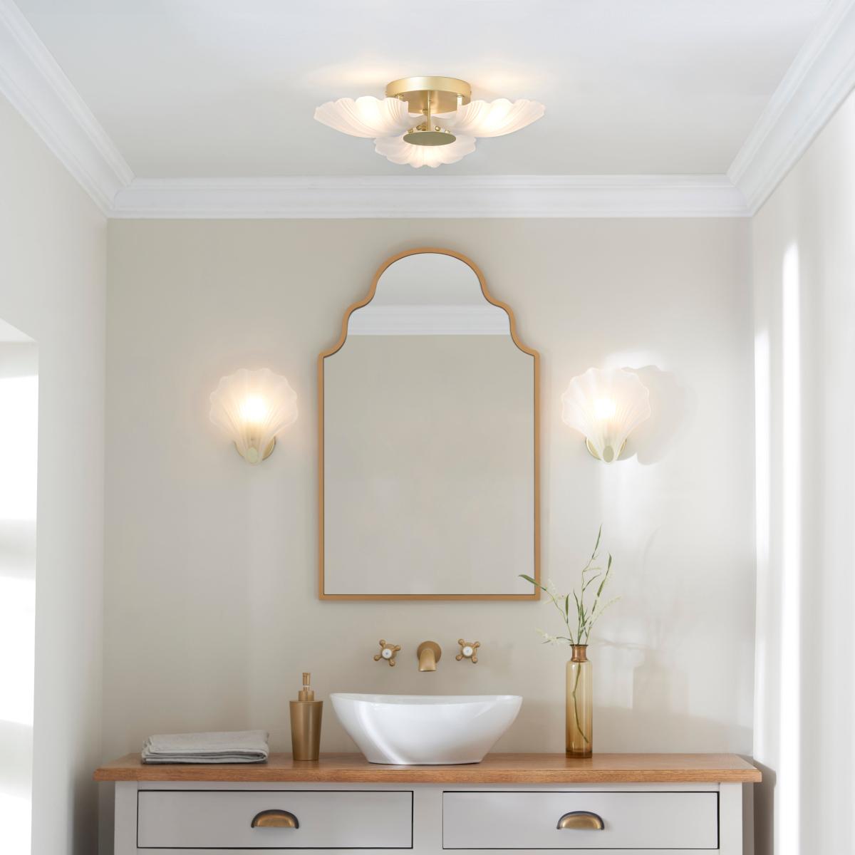 * Coastal Glass Shell Shade* IP44 Rating - Suitable for Bathroom Use* Dimmable with Compatible Bulb & Switch Bring coastal vibes to your bathroom with the Shell Coastal Bathroom Wall Light. Its stunning glass shell shade design evokes a sense of seaside tranquillity. With an IP44 rating, it's suitable for bathroom use, ensuring durability in moisture-prone environments. Dimmable with a compatible bulb and switch, it offers customisable lighting to create a relaxing ambience.