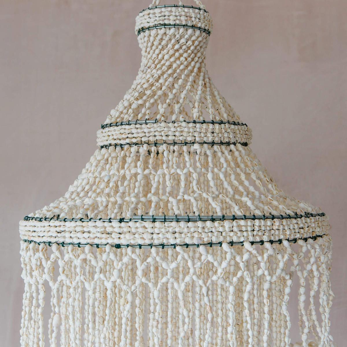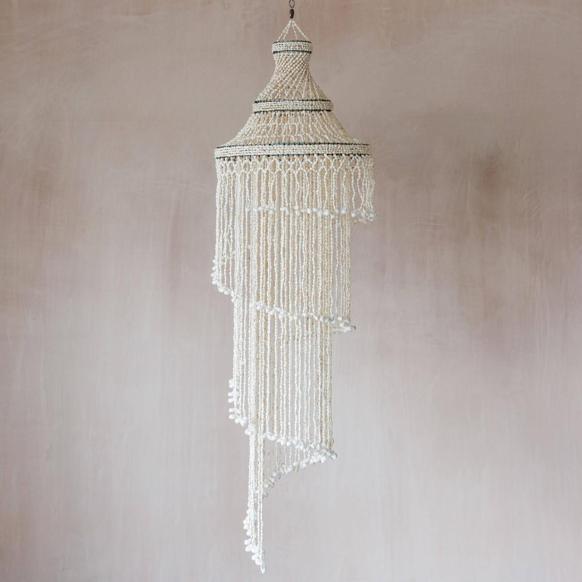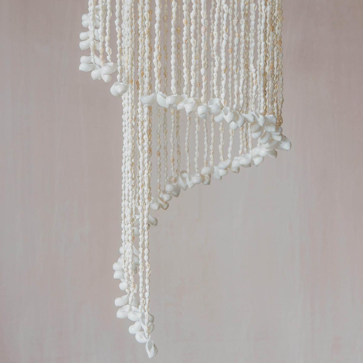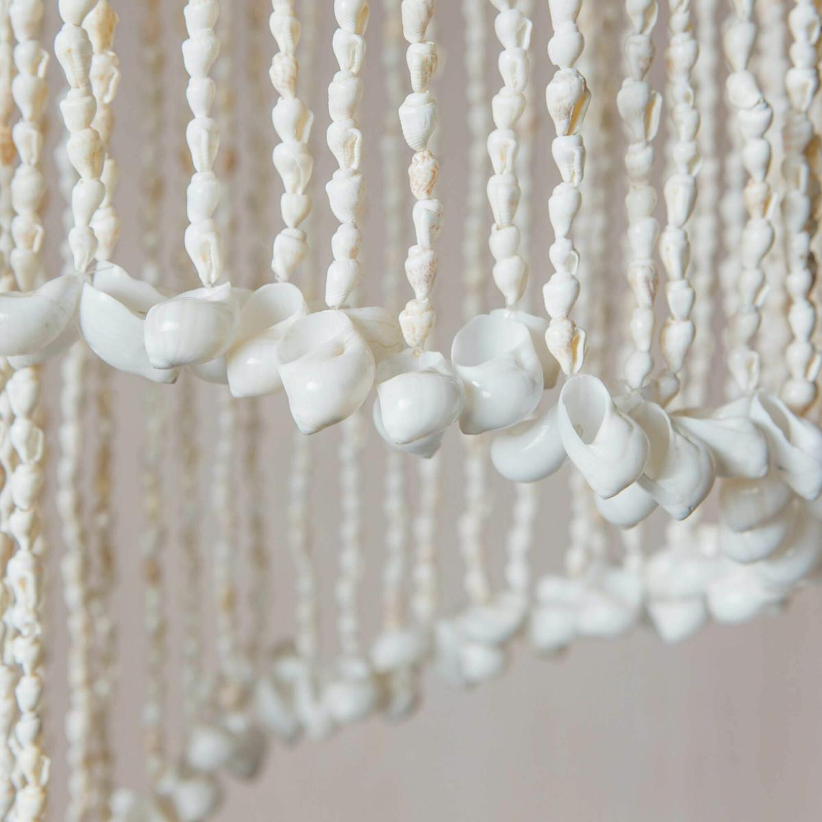 A cascading pendant shade made from small shells threaded together. Transform your hallway or staircase into a coastal paradise with this delicate light shade.