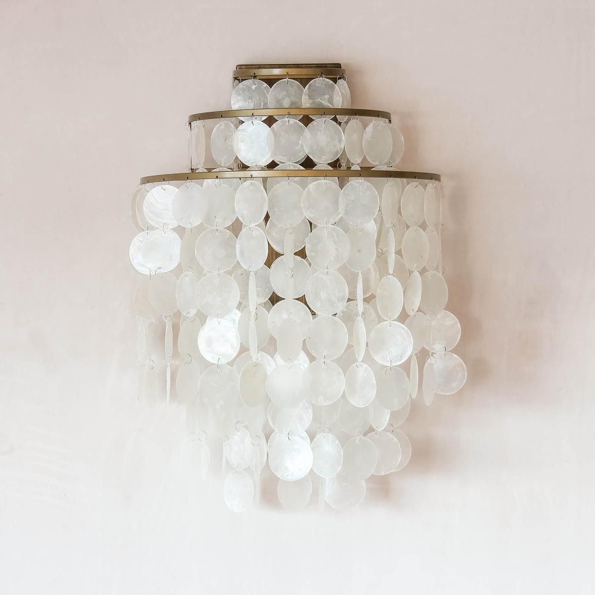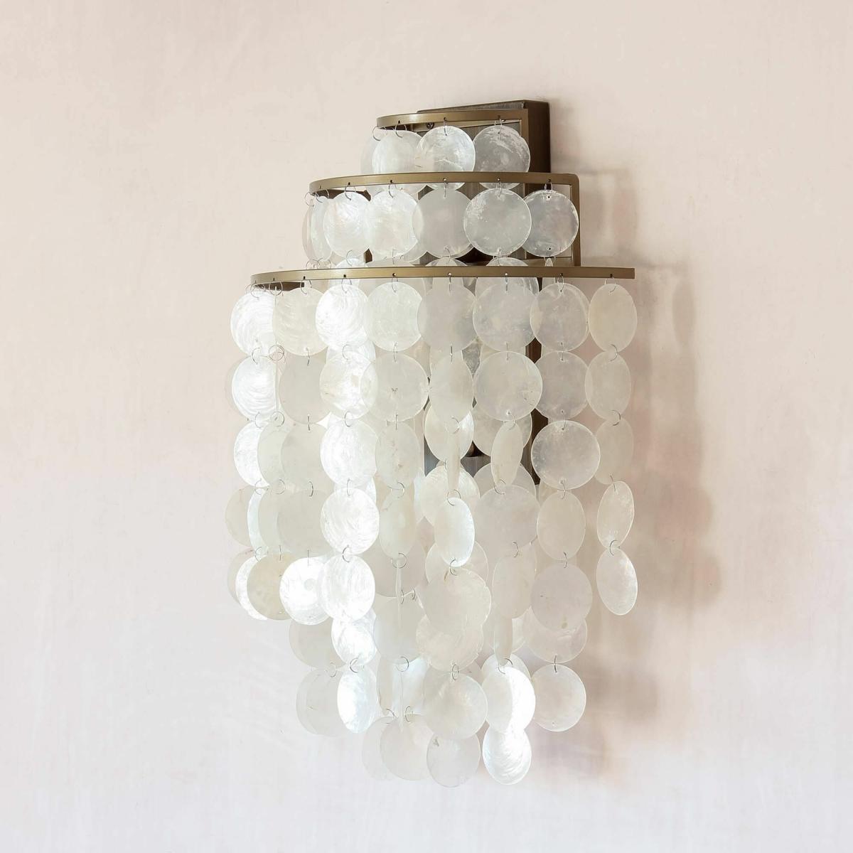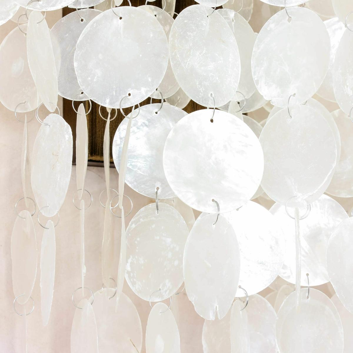 Let light bounce around the room dressed in tiers of delicate pearlescent shells, perfect as a pair for coastal-inspired interiors.