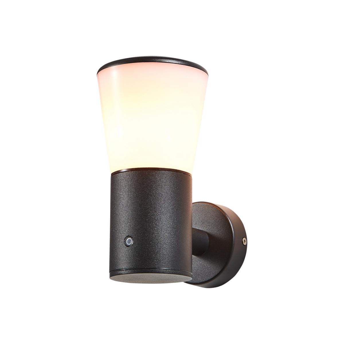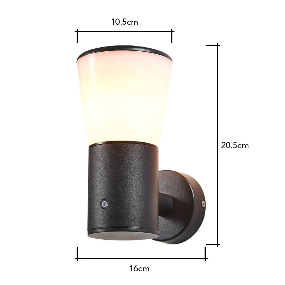 Get functional energy saving lighting for the outside of your home with the Shem Outdoor Wall Light with Photocell Sensor. This wall light comes in a sleek black finish for a modern aesthetic and features a photocell sensor which only turns on when it senses that natural light levels are low, saving you money throughout the day. It also comes IP44 rated for water resistance and has a minimalist design with an opal glass shade for a bright glow diffused outwards.