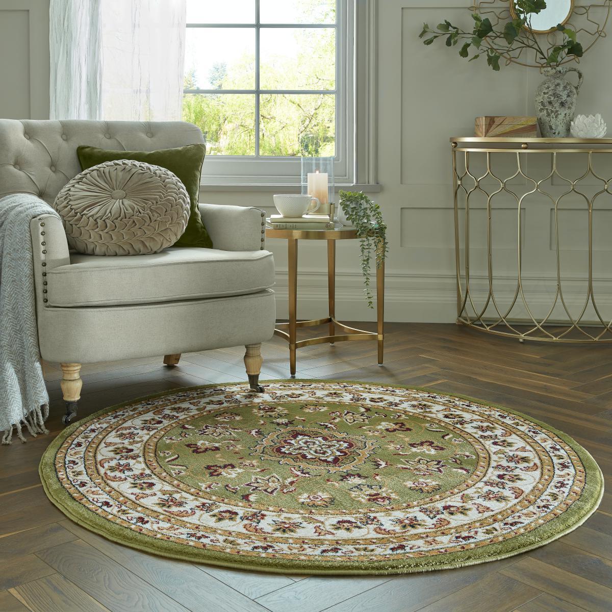 Go traditional with the Sherborne Circle Rug, pairing traditional shades with a timeless design. The Sherborne style adds a classic look to any space, while the border style design creates a central spot in your space. In 100% polypropylene pile, the Sherborne Circle Rug is ideal for high-traffic spaces in your home. We love using the Sherborne Circle Rug to add a touch of tradition to living spaces. A small amount of fibre loss is normal. Do not pull loose fibres, just trim with scissors. Safe for use with anti-slip backing on a heated floor. Use a suction type vacuum - rotating brushes may damage this rug. Re-roll your rug pile out for 24 hours to reduce curling. Regularly turn to ensure even wear. An anti-slip mat will help prevent slipping. Blot spills immediately with a clean, dry white cloth. Do not rub. Do not place this rug near an open fire. Please do not leave children or infants unattended.