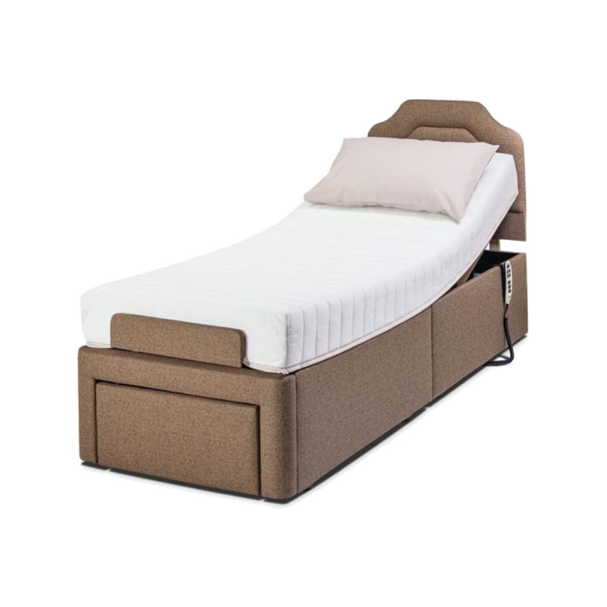 This ground-breaking Adjustable Bed range offers super-strength (28 stone weight limit) a fully-upholstered no-slat base with easy no-tool assembly and a host of other benefits. The backlit handset comes with 2 memory positions as standard, and each Bed has a sturdy, fully upholstered storage drawer. With Dual Motor control (Head and Foot adjustment) as standard, all Dorchester Adjustable Beds use a unique action supplied in two parts only for ease of delivery and easy assembly with no tools required. King size and Super King size models are 2 single beds linked together, not an individual base and mattress Choice of 2'6', 3', 4', 5' and 6' sizes. Base is 40.5cm high. Personal Sherborne 5 Year Guarantee. Choice of castors or glides as standard.(Glides may be more suitable for solid flooring) Base Only Supplied (Mattress and Headboard available to buy seperately) All screens vary in colour reproduction and whilst every effort has been made to display the colour as accurately as possible it is for guidance only.