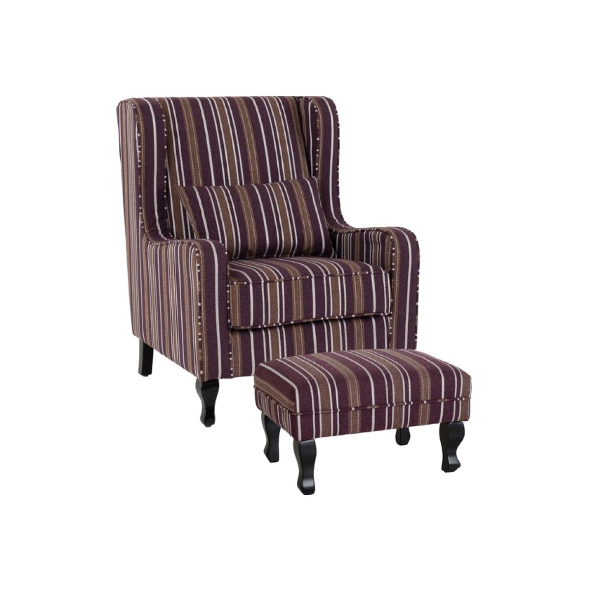 Sherborne Fireside Chair with Footstool - Burgundy Stripe